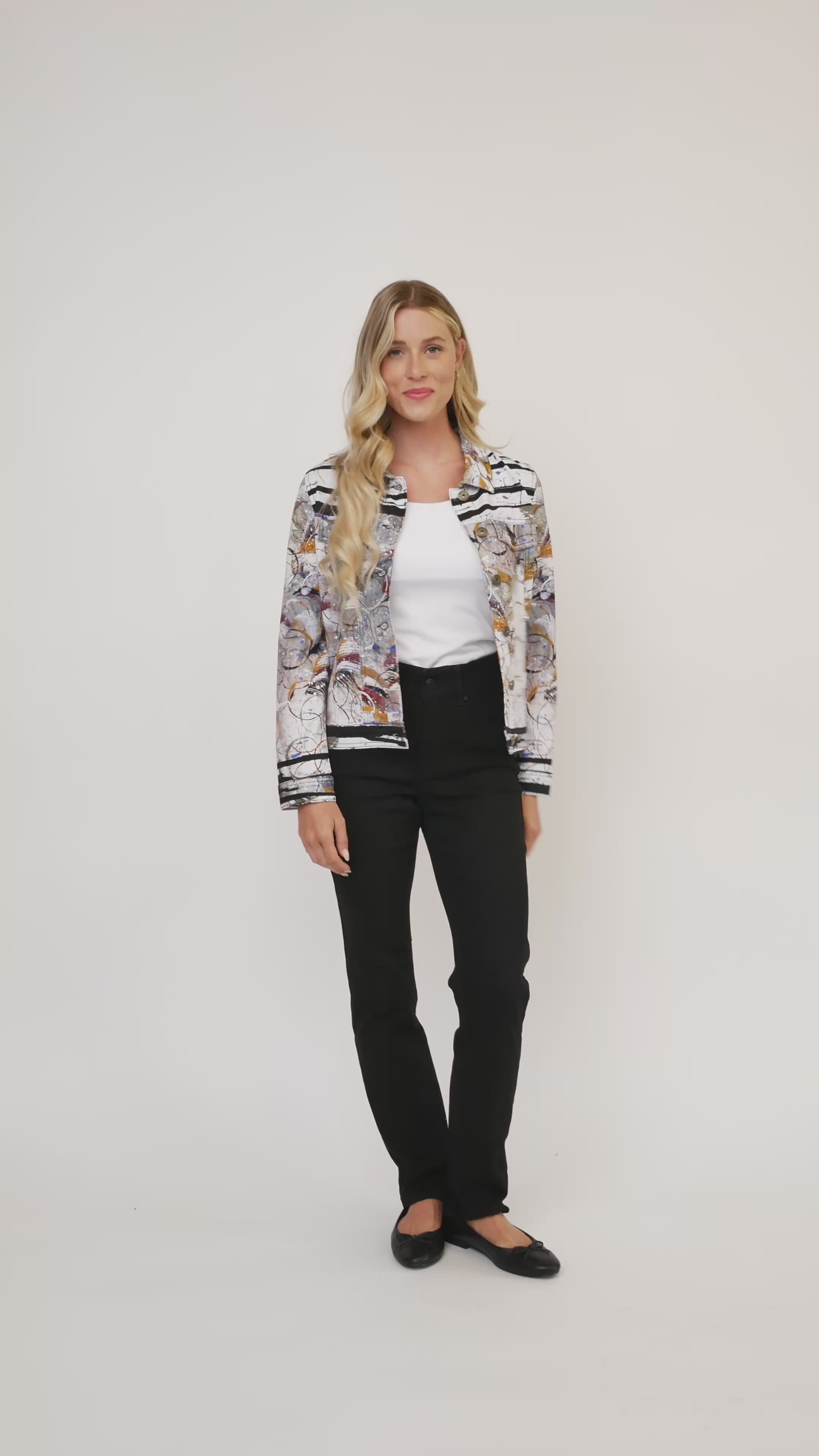 Combine comfort and style with this abstract stripe jean-style jacket from Dolcezza. Featuring long sleeves and a classic shirt collar, it offers a button-front closure for easy wear. Practical pockets with flap detail add a fun twist, while the soft cotton blend fabric ensures all-day coziness. Available in both Petite and Regular fits, it’s the perfect go-to layering piece that brings a dash of whimsy to your wardrobe.