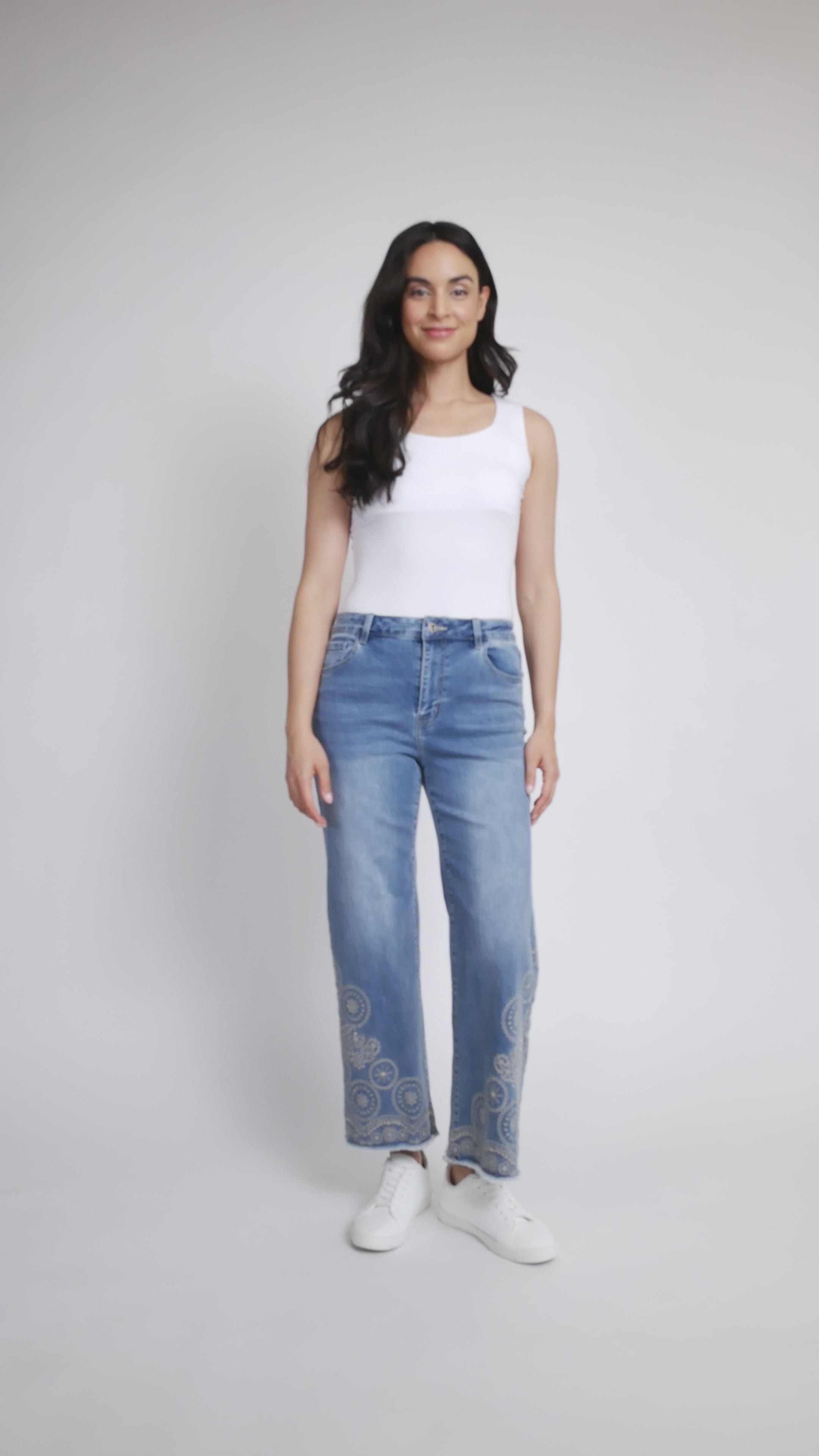 Flare leg embroidered hem jean