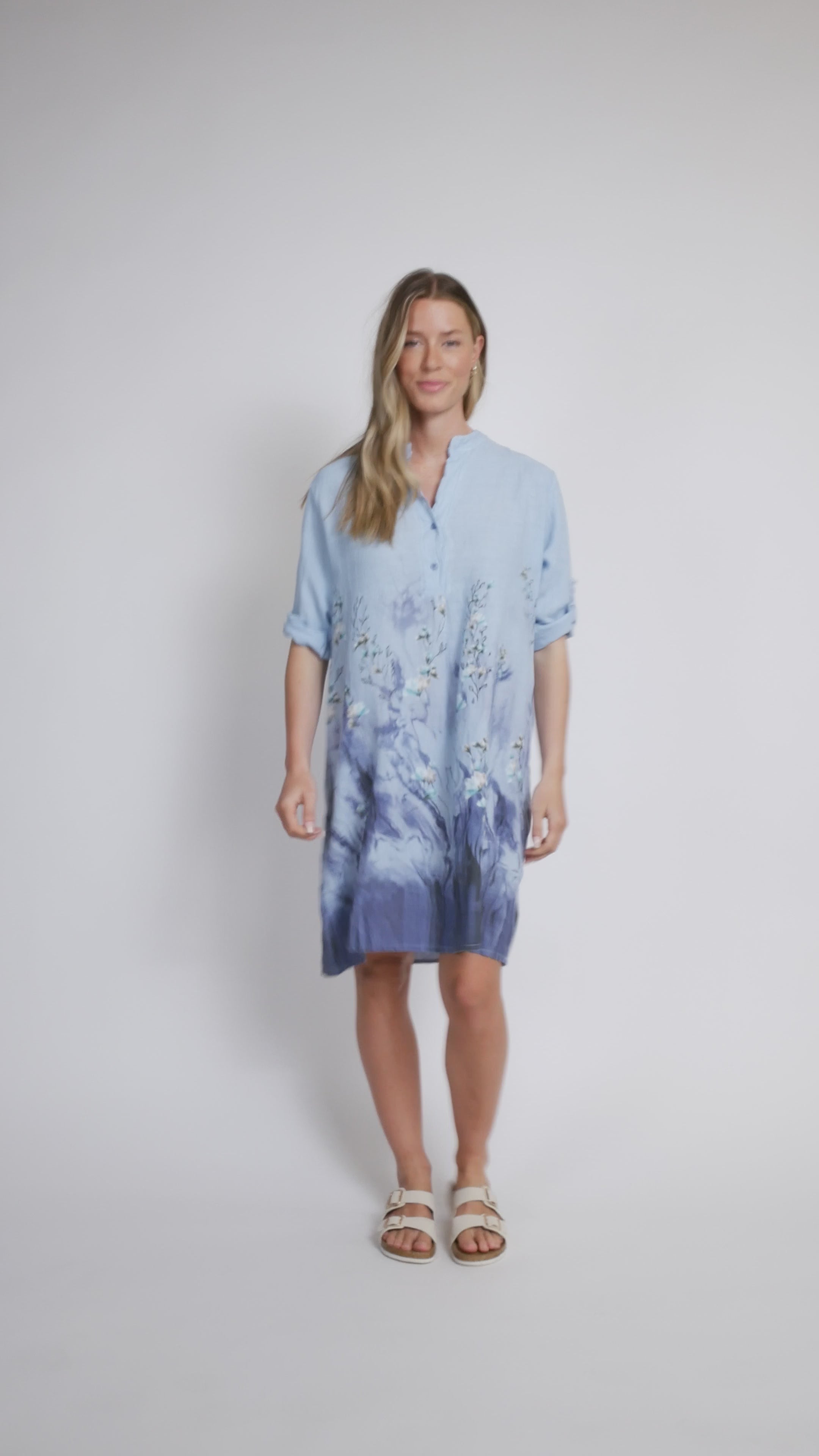 Effortlessly chic, this floral print linen dress brings Italian elegance to your everyday wardrobe. Crafted from a breathable linen blend by Via Vitale and made in Italy, it features a charming Henley neckline with button details, three-quarter sleeves with tab accents, and flattering side slits for easy movement. Perfect for warm-weather styling with an understated sophistication that feels anything but boring.