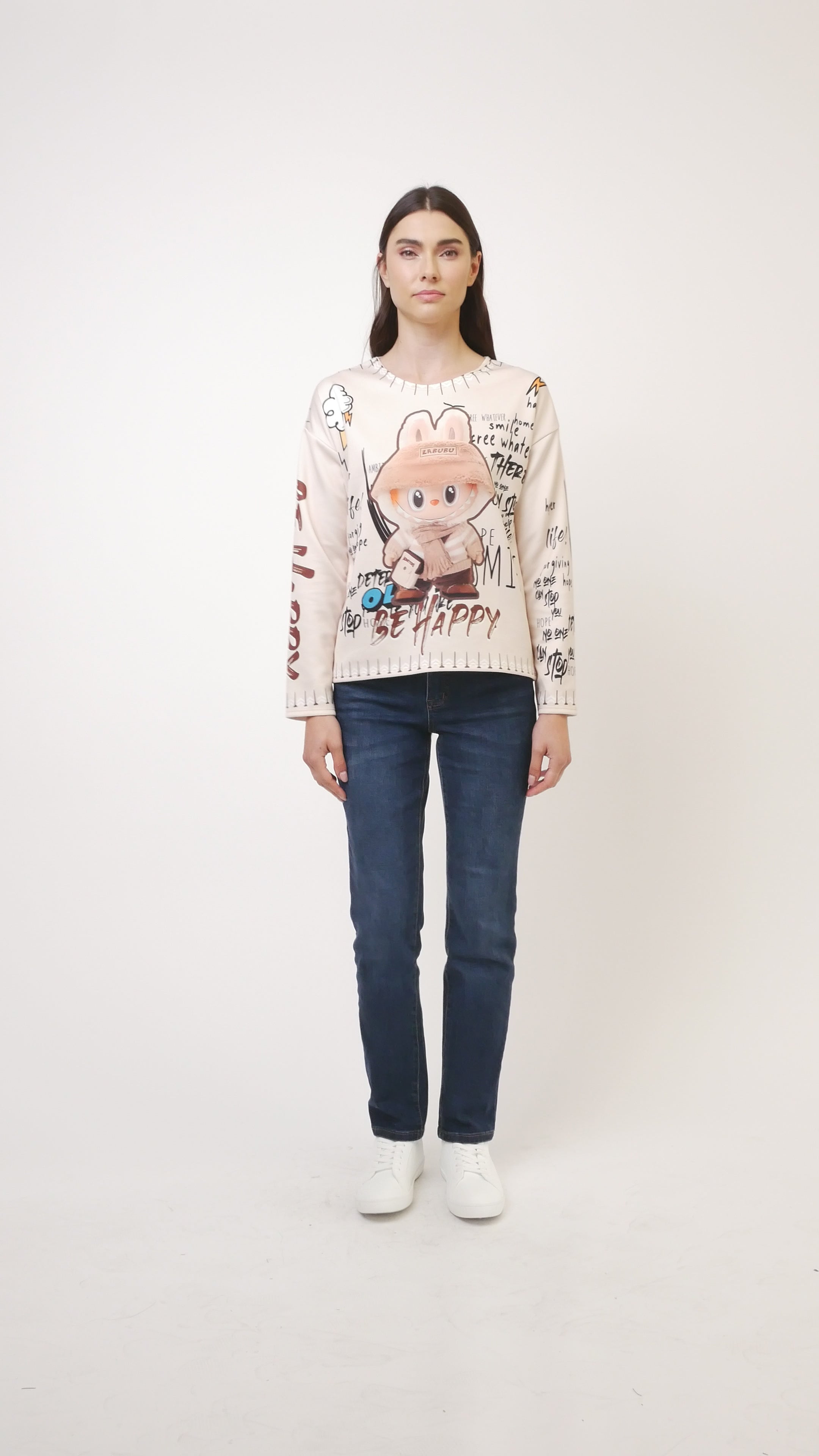 The Labubu print top combines playful charm with premium comfort. Crafted from smooth scuba knit fabric made in Italy, this long-sleeve piece features a cozy crew neckline that’s perfect for layering or wearing on its own. Its soft stretch offers ease and movement, making it an ideal choice for adding a fun and stylish touch to your everyday look.