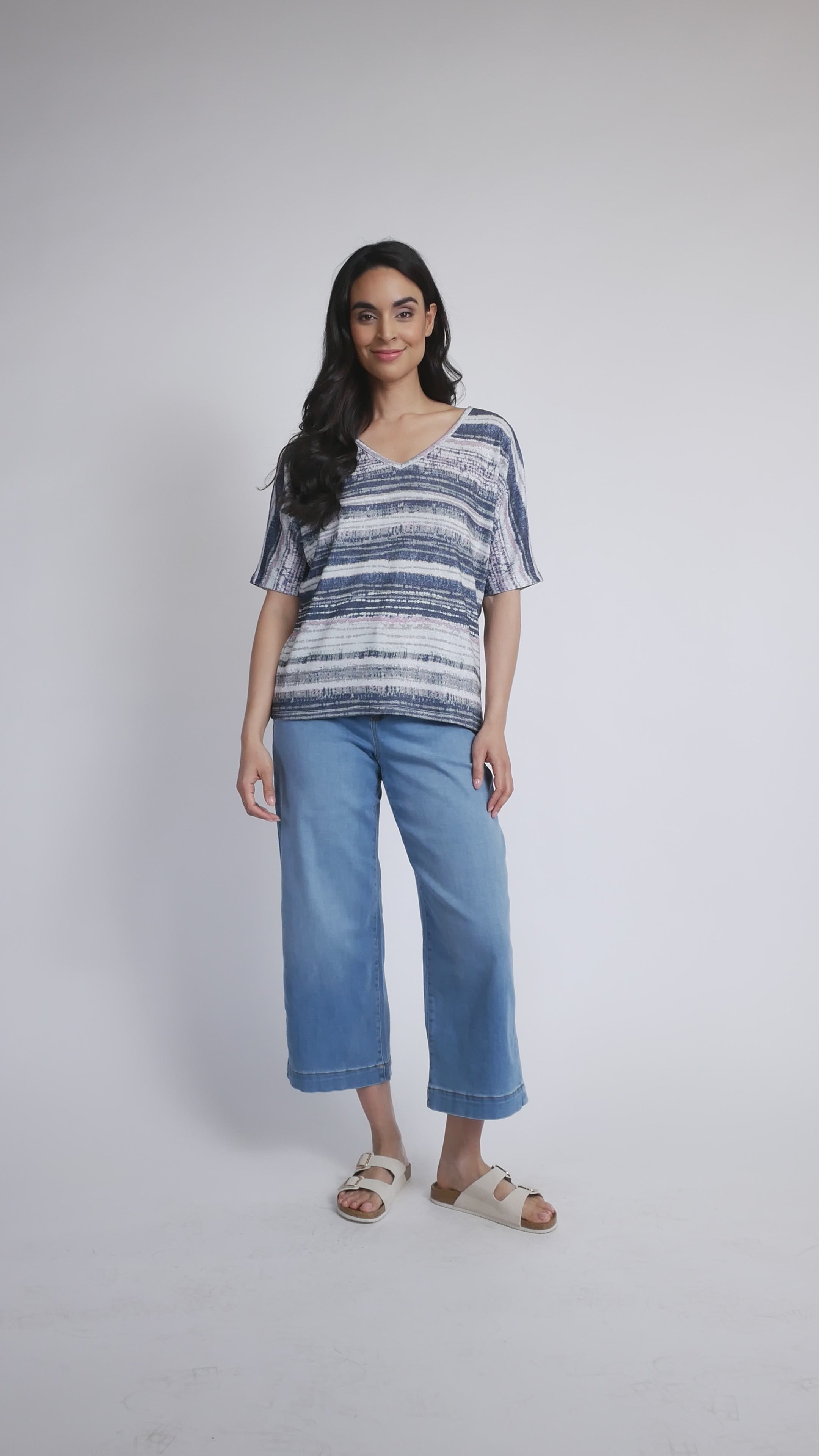 Elevate your everyday style with this chic lurex stripe top by Orly. The flattering V-neckline and soft knit fabric create an effortlessly polished look, while shimmering lurex details add just the right amount of sparkle to catch the light. Perfect for dressing up basics or layering over your favorite pieces, this short-sleeve essential brings a touch of glamour to any outfit.