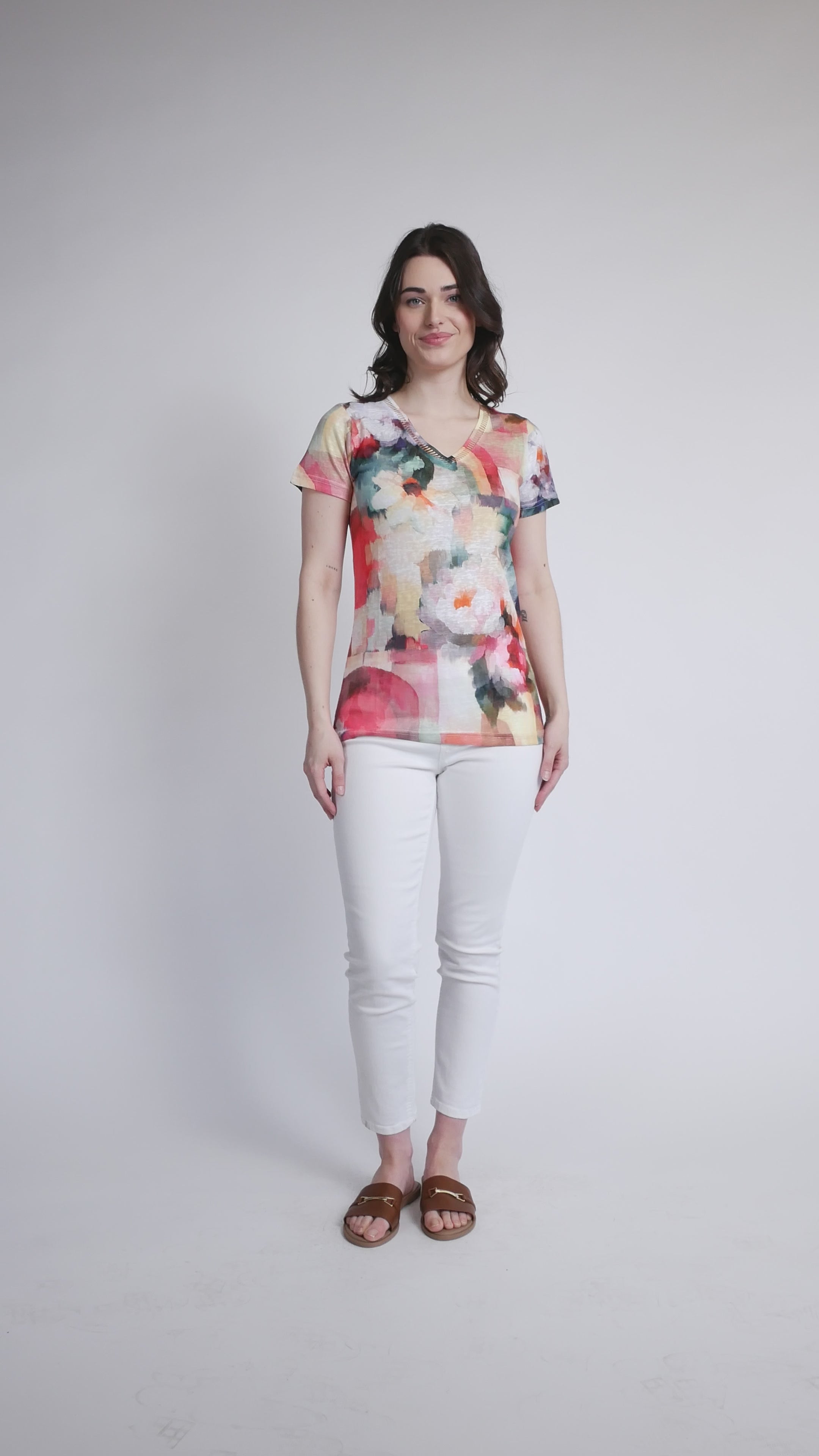 Effortlessly chic and ready for anything, this muted floral top by Vex brings understated elegance to your everyday rotation. The lightweight knit fabric drapes beautifully while keeping you comfortable all day long. With a classic crew neckline and short sleeves, it's the perfect layering piece or standalone essential. Pair it with your favorite jeans, skirts, or trousers for a look that feels both polished and relaxed. A versatile wardrobe staple that works as hard as you do.