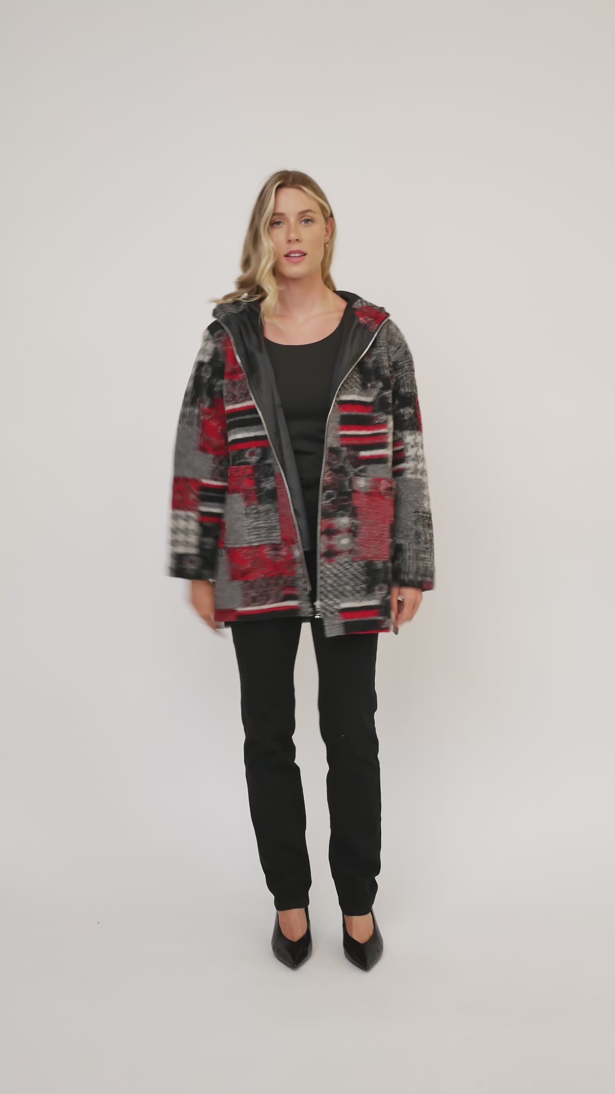 This patch print boiled wool jacket by Via Vitale brings Italian craftsmanship to your wardrobe. With long sleeves, a stand-up neckline, and a zip front closure, it’s both stylish and practical. Patch pockets and side slit details add charm and ease, while the lined wool blend fabric keeps you warm and comfy. Perfect for adding a fun twist to your cool-weather looks!