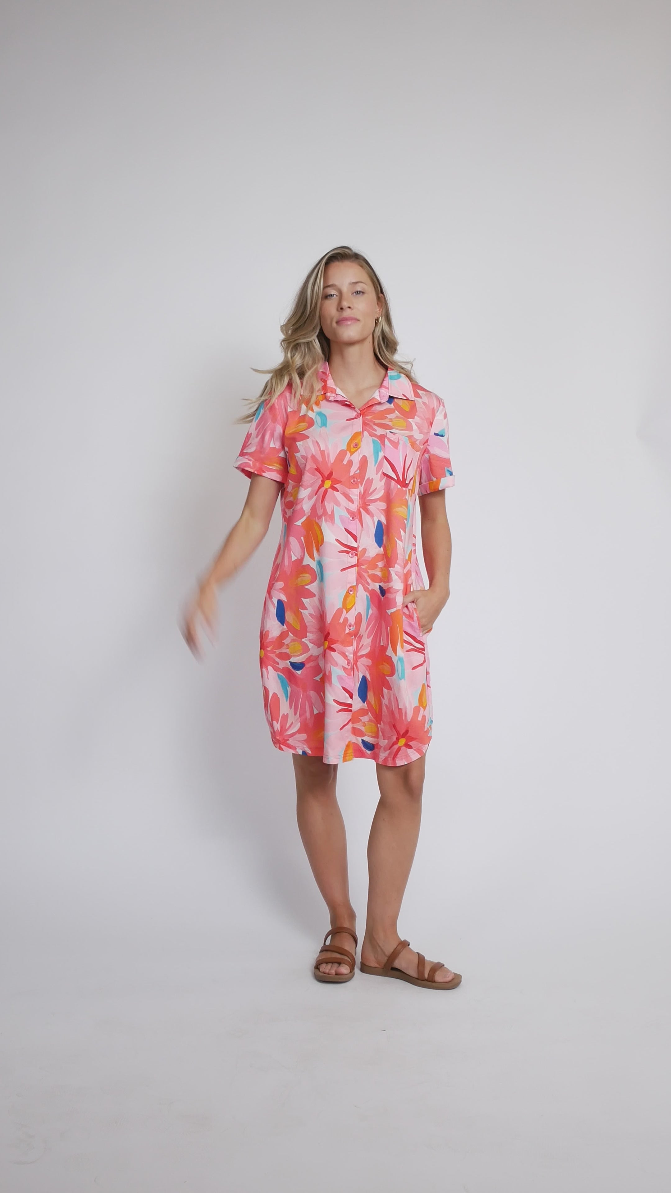 Effortlessly chic and oh-so-comfortable, this printed Tencel shirt dress is your new go-to piece. Featuring a crisp shirt collar, button-front closure, and practical hand pockets, it's designed for real life—and real style. The breathable Tencel fabric keeps you cool while the rounded hemline adds a flattering touch. Short sleeves make it perfect for layering or wearing solo. Dress it up or down, this versatile number works harder than you do.