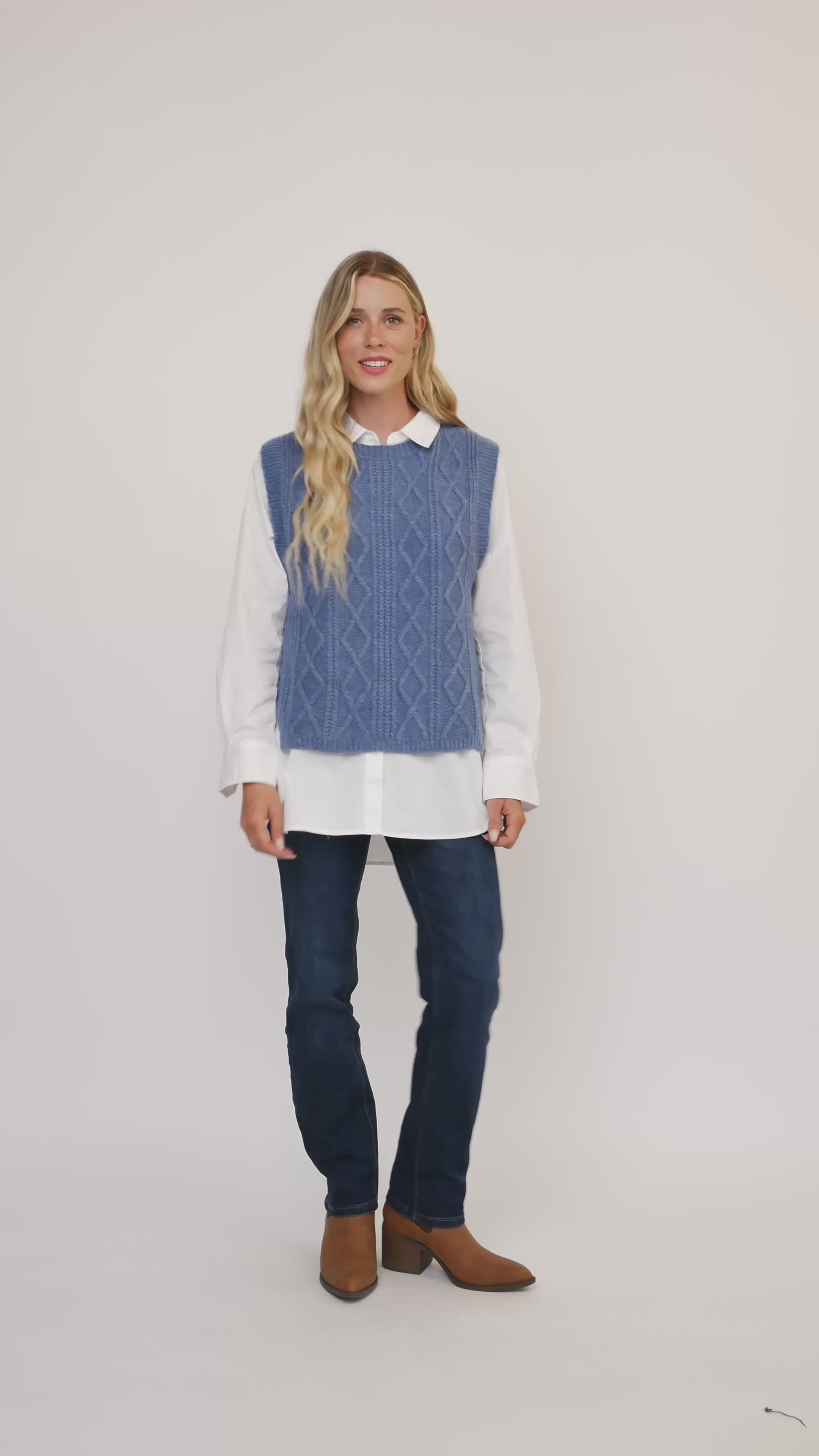 This pullover cable vest by Via Vitale combines a sleeveless design with a classic crew neckline for easy layering. The rib knit fabric offers cozy texture, while the side button details add a quirky, stylish twist. Crafted in Italy, it’s a fun and fashionable addition to your wardrobe.