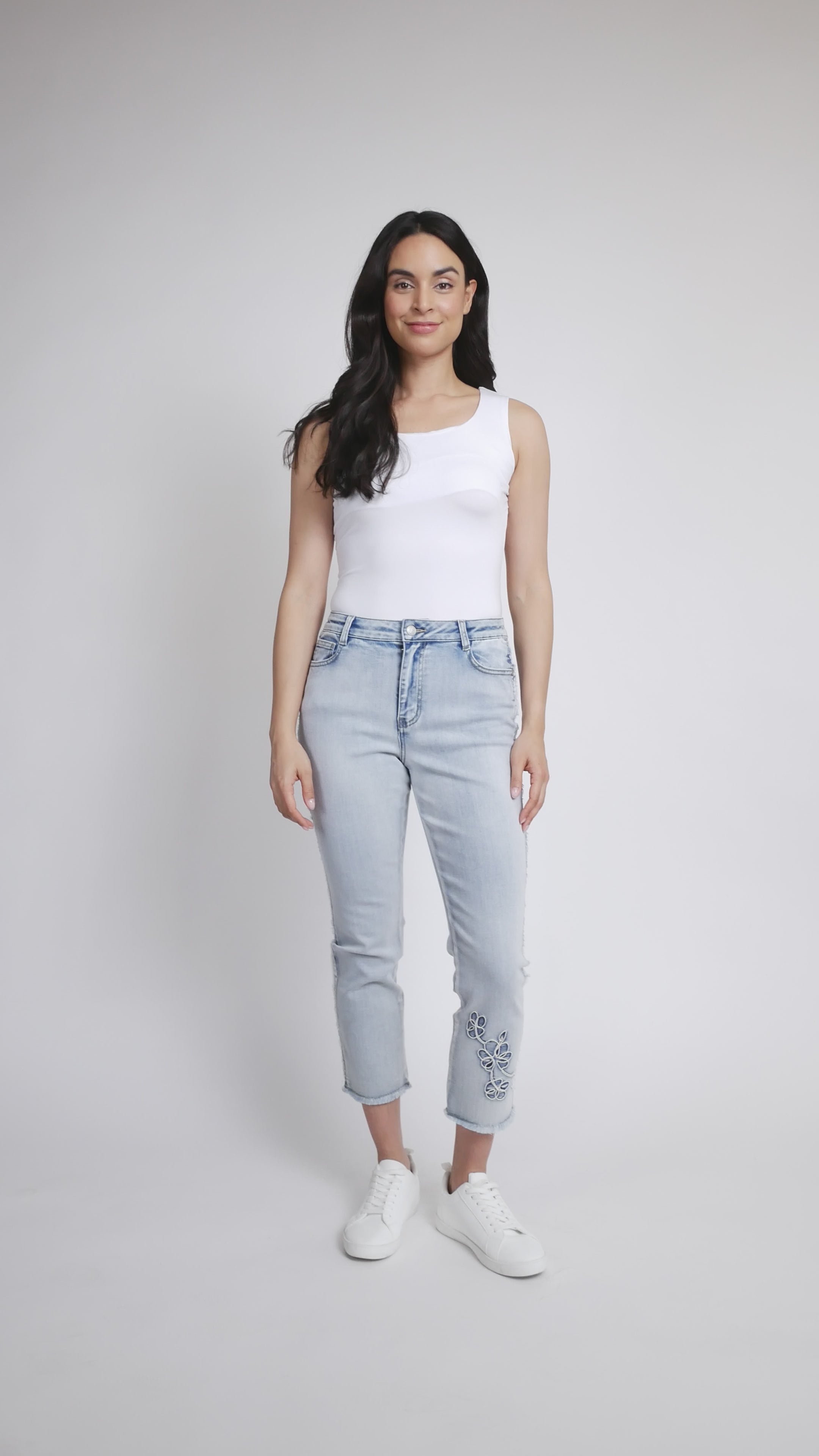 Slim leg embroidered hem jean