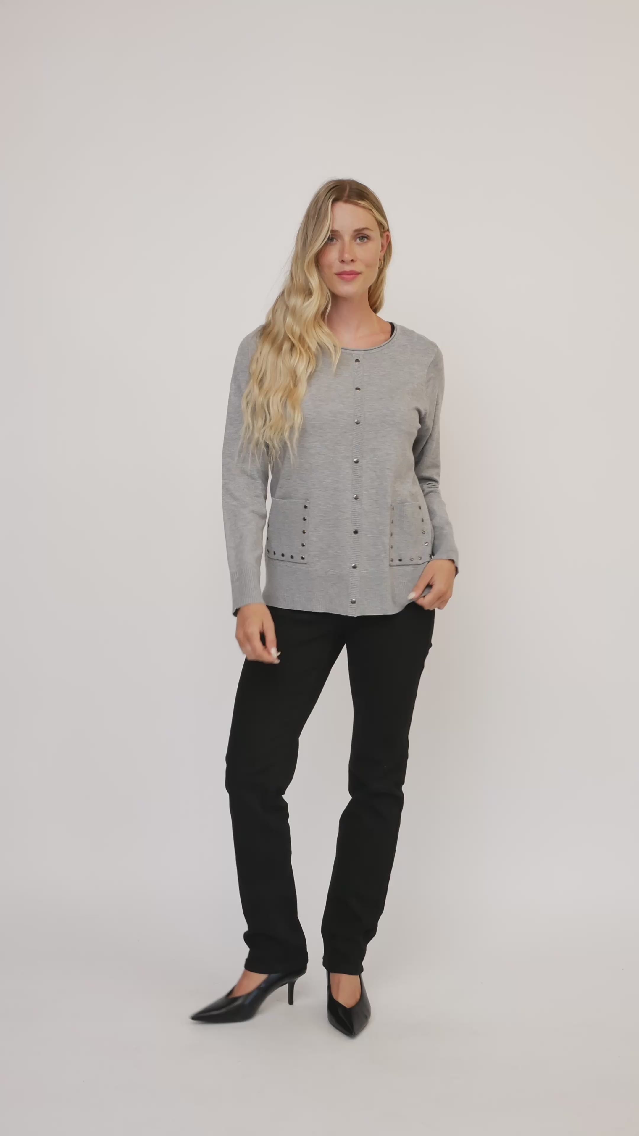 Add some sparkle to your wardrobe with this sassy Stud detail sweater by Alison Sheri! This knit treasure features long sleeves and a classic crew neckline for that just-right fit. The playful patch pockets aren't just cute—they're perfect for stashing your little secrets! But the real star? Those fabulous stud trims that catch the light with every move. Who says staying cozy can't be totally fun?