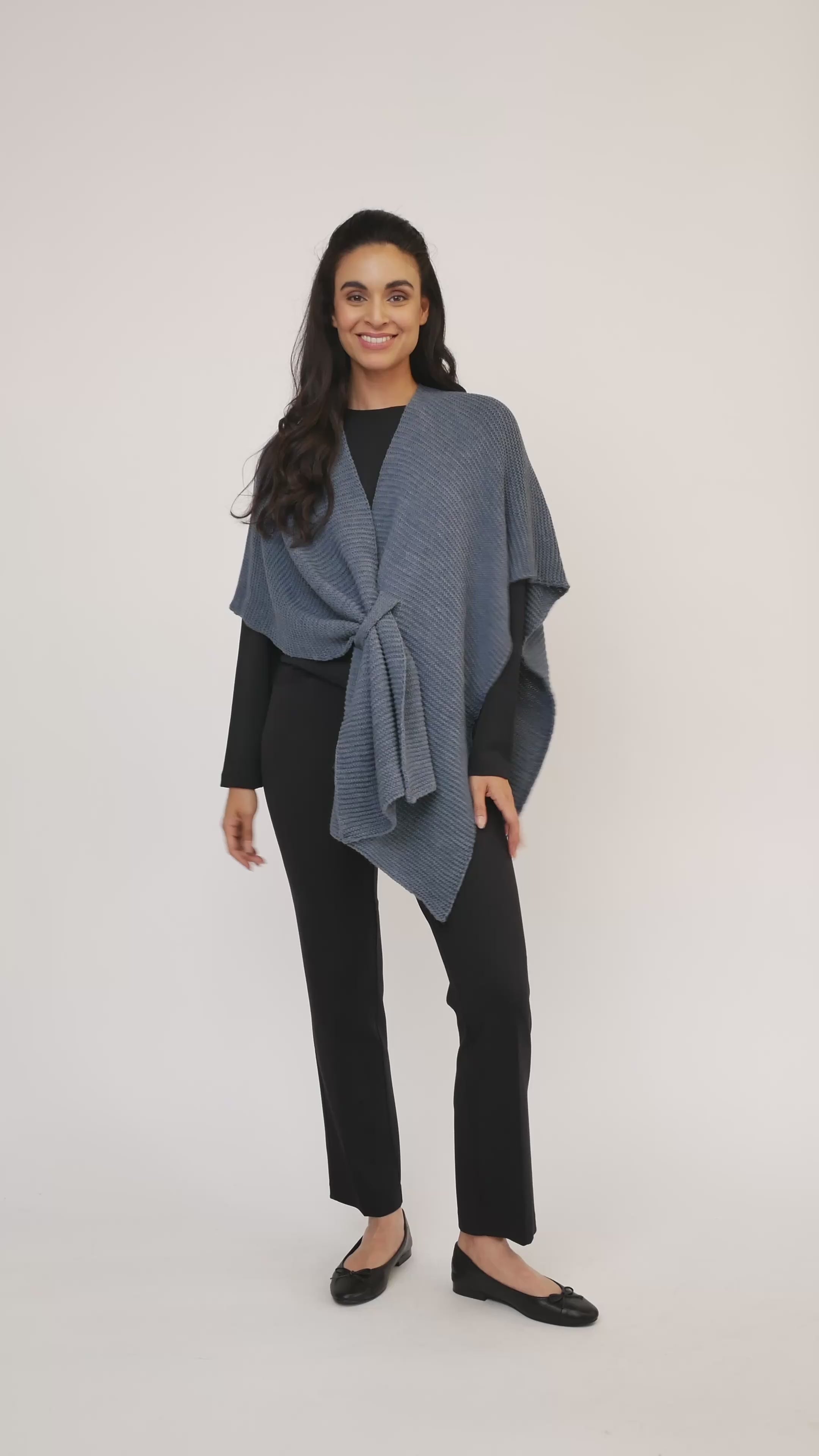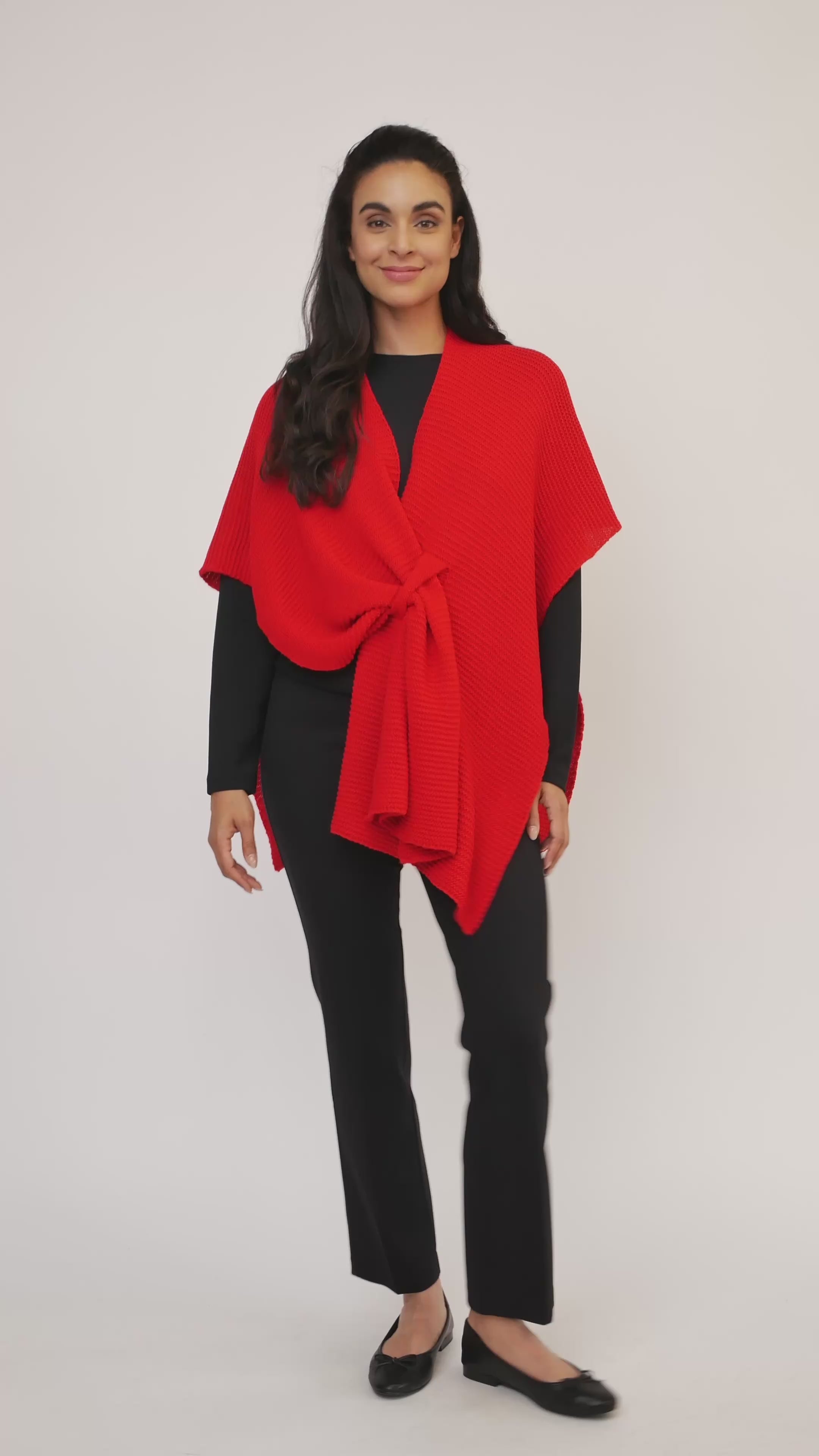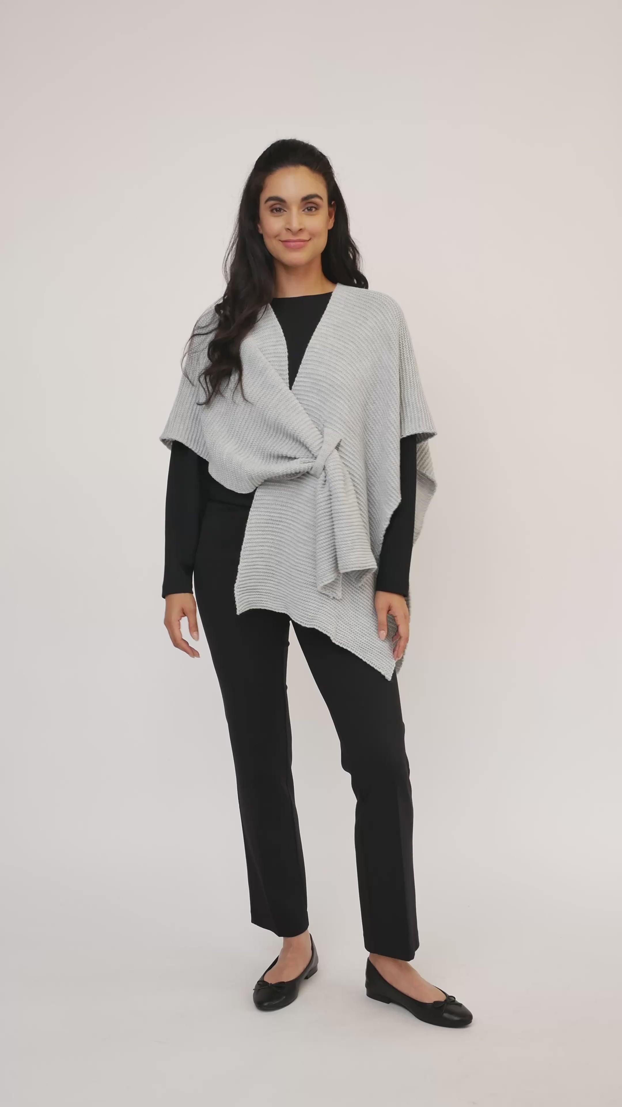 Wrap yourself in cozy charm with this playful sweater cape featuring a stylish loop front detail. Crafted from soft knit fabric, it offers warmth and comfort with a touch of Italian elegance, made by Via Vitale. Perfect for adding a fun twist to your layering game!