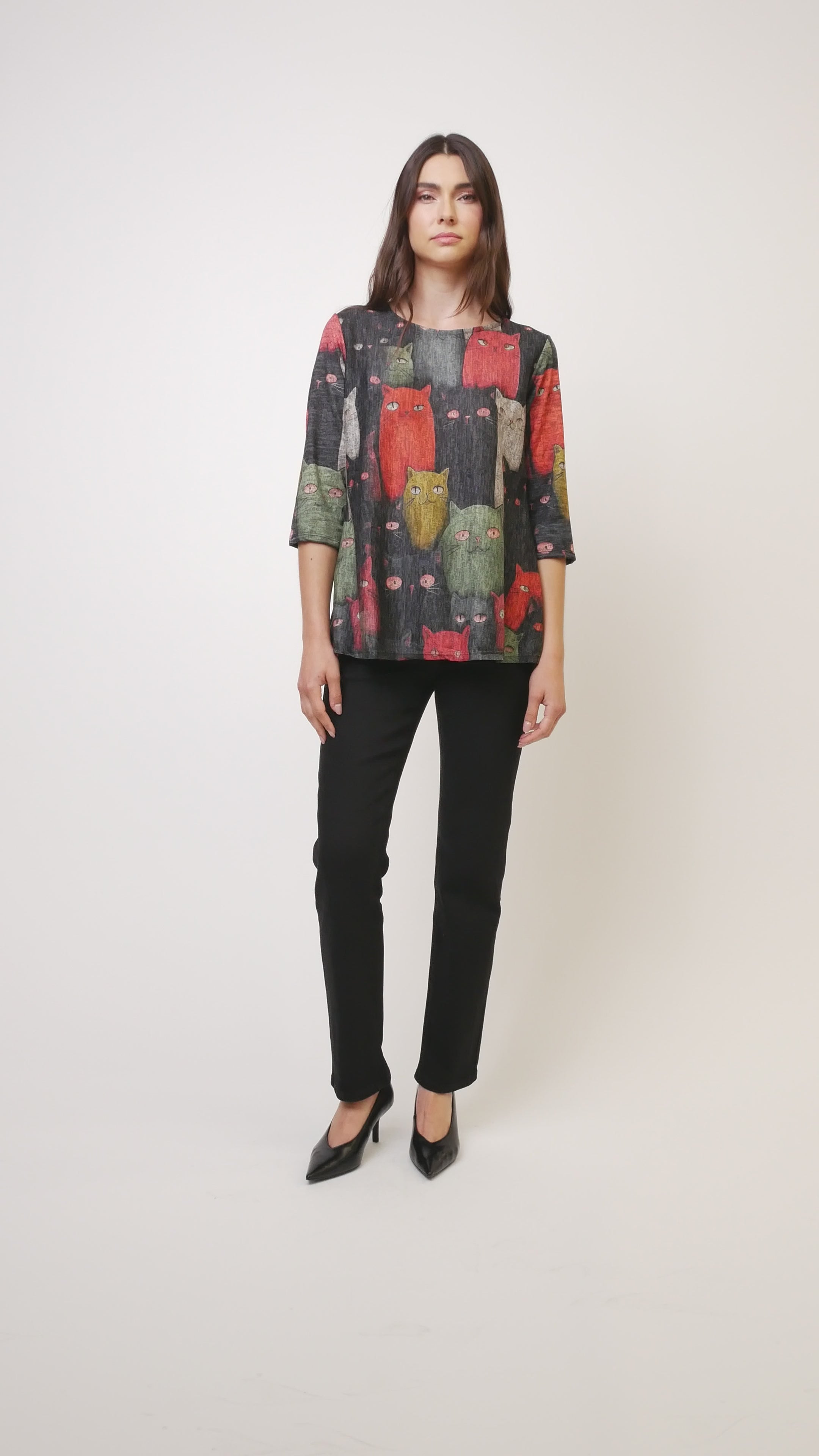 Embrace a playful charm with this knit top. Featuring a cozy 3/4 sleeve and a classic crew neckline, its A-line fit flatters with a fun, flirty flare. Crafted from soft knit fabric made in Italy, it brings together comfort and style effortlessly—perfect for days when you want to feel both cute and comfy.
