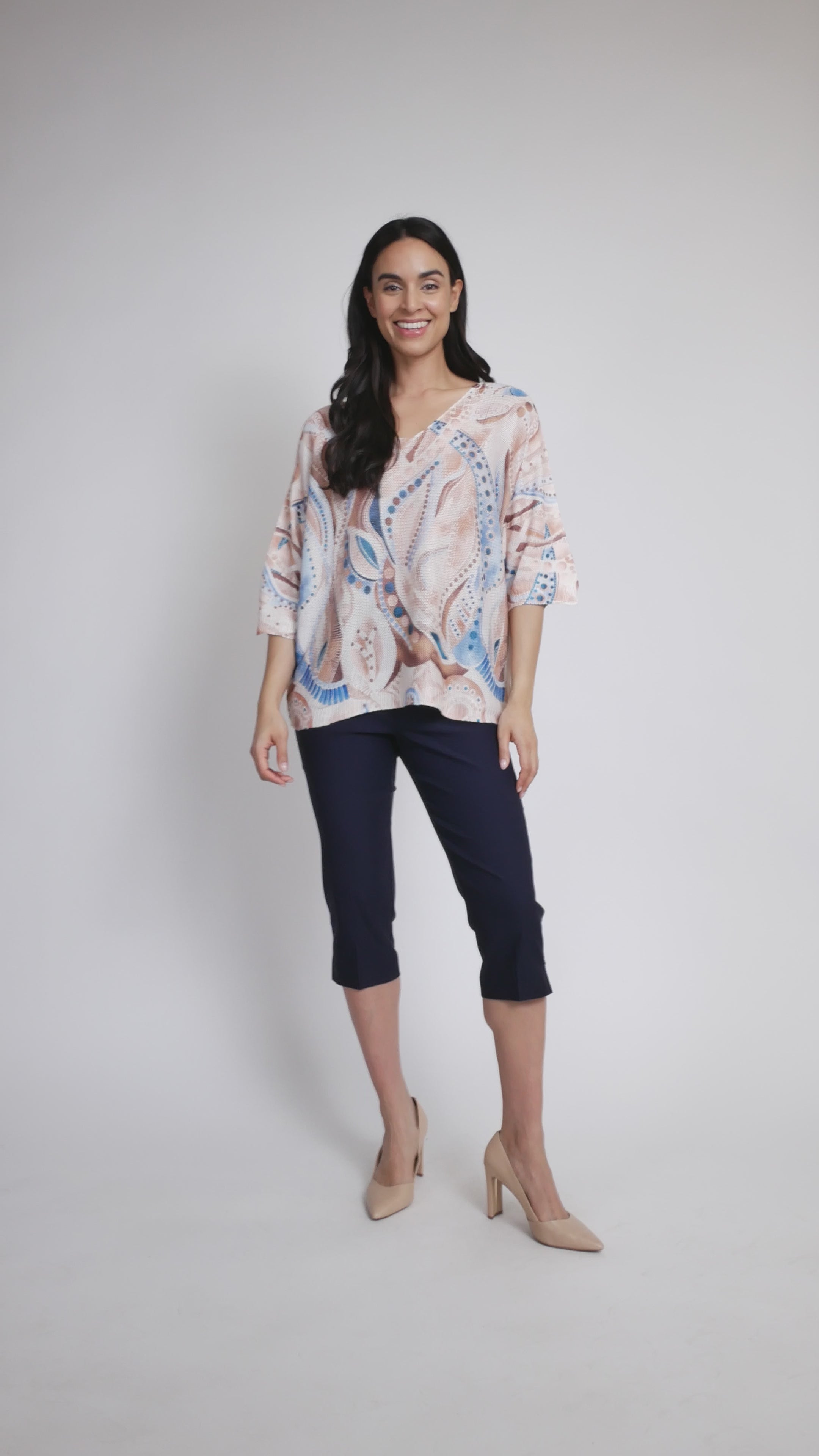 Sublimez votre style au quotidien avec ce charmant pull Via Vitale. Confectionné en Italie dans une maille douce et de qualité, ce modèle présente un décolleté en V flatteur et des manches dolman 3/4 fluides qui épousent vos mouvements. Son motif à pois abstrait apporte une touche d'originalité à toutes vos tenues, idéal à superposer ou à porter seul. Un indispensable polyvalent, aussi agréable à porter qu'à regarder.