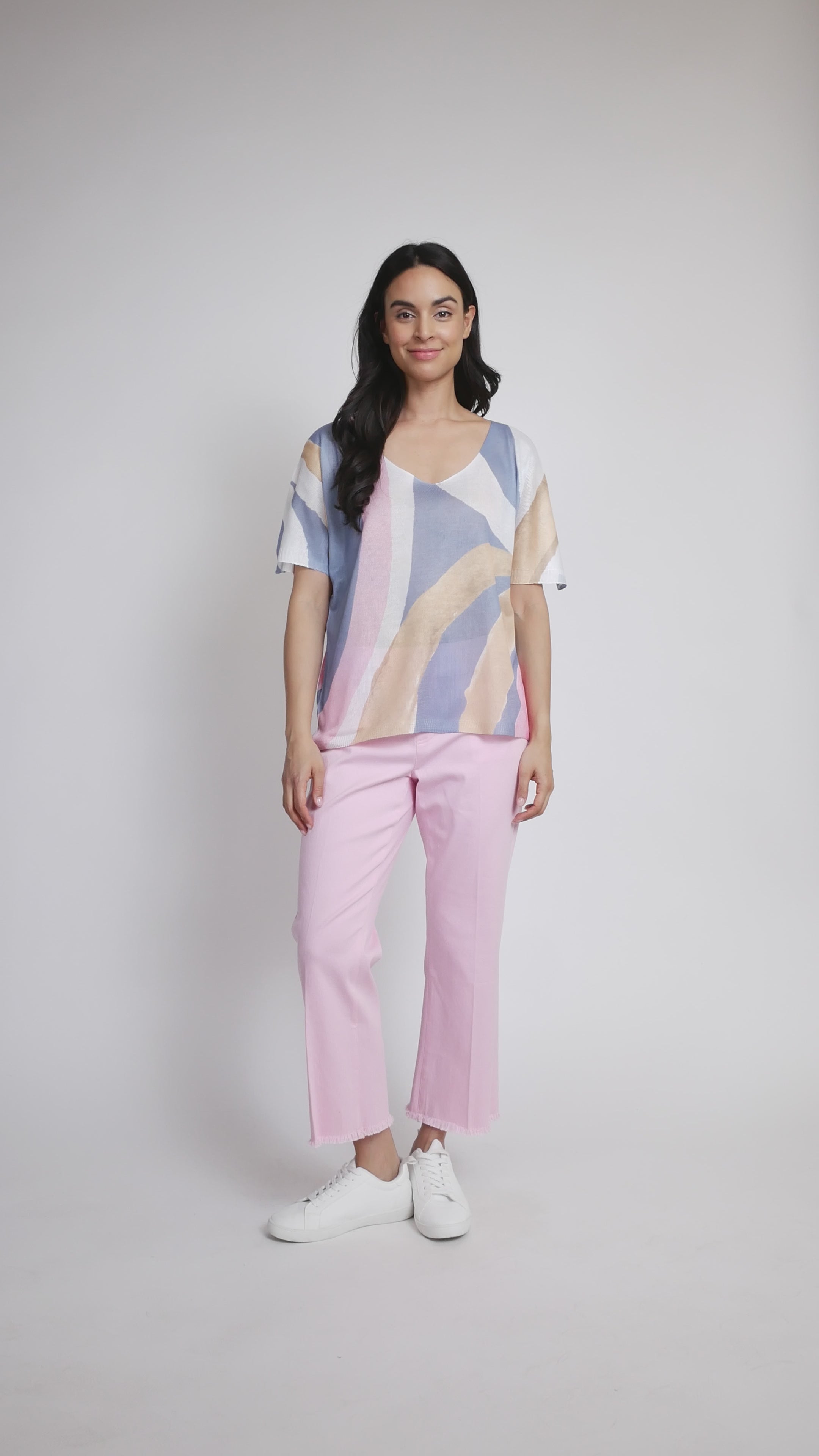 Léger et d'une élégance naturelle, ce pull Via Vitale apporte une touche de savoir-faire italien à votre garde-robe quotidienne. Sa coupe décontractée à manches T et son décolleté en V flatteur créent une silhouette fluide et aérienne, tandis que sa maille douce procure une sensation de confort absolu. Orné d'un imprimé abstrait original qui ne manquera pas de susciter la conversation, il est idéal à superposer ou à porter seul. Fabriqué en Italie, il allie qualité et style.