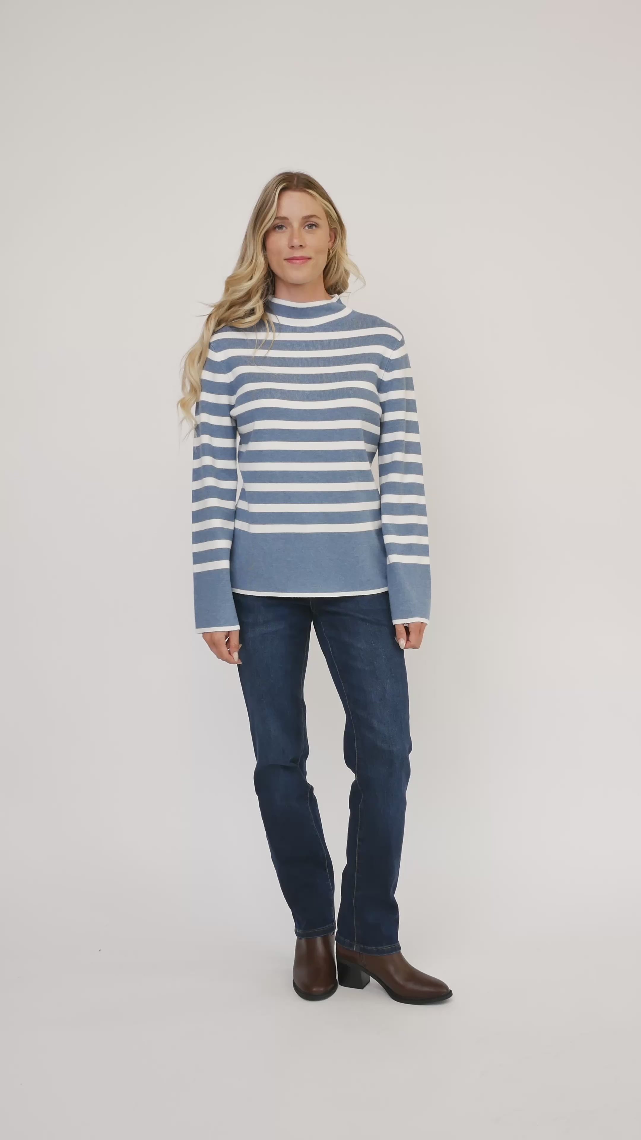 Ajoutez une touche de fantaisie à votre garde-robe avec ce pull rayé à manches cloche signé Tribal. Doté de longues manches cloche et d'un col cheminée douillet, il est confectionné en maille douce pour un confort optimal tout au long de la journée. Disponible en coupes Petite et Régulier, ce pull vous permet d'adopter des rayures audacieuses avec un style flatteur et décontracté.