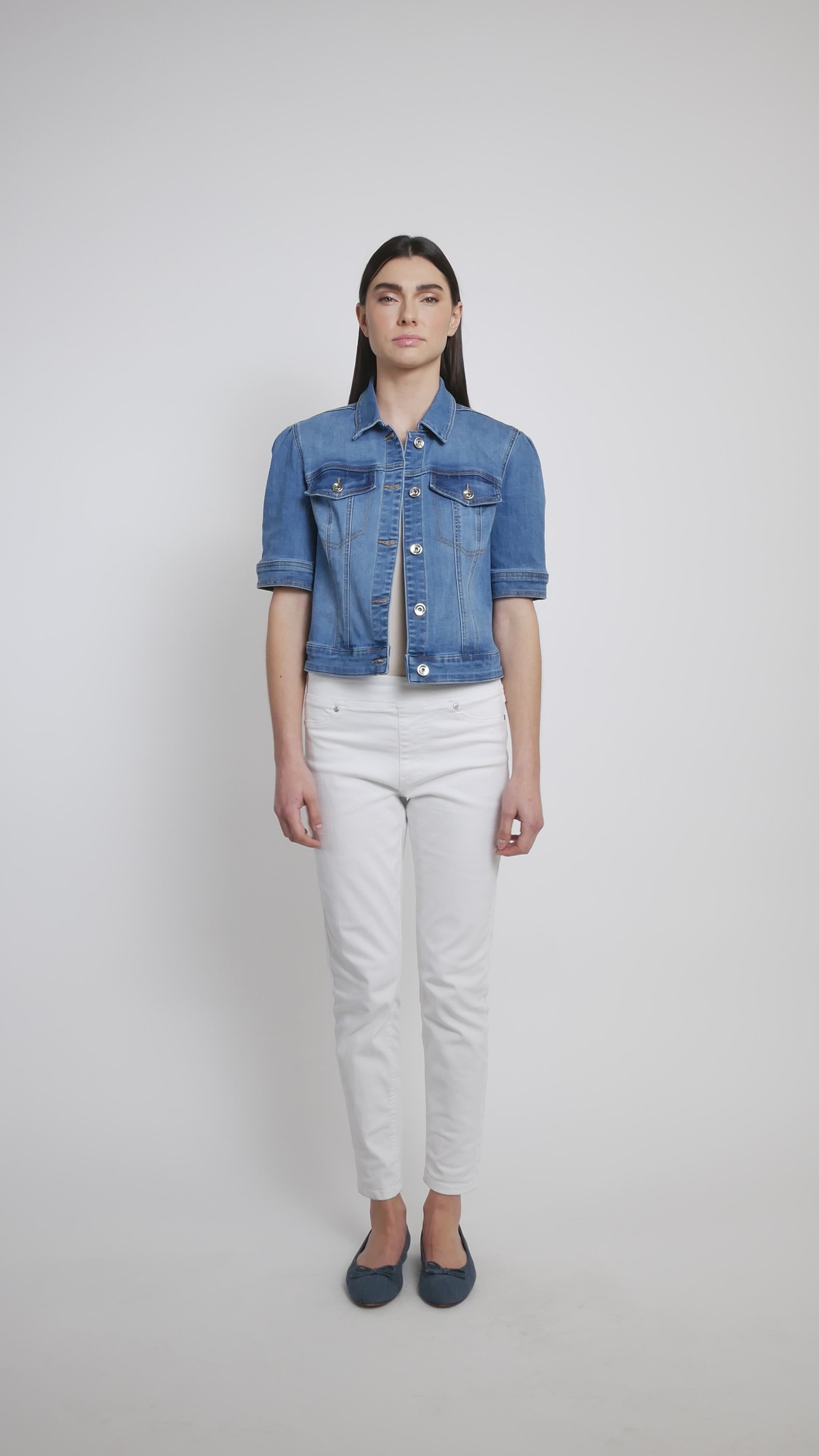Adoptez un look décontracté et tendance avec cette veste en jean signée Tribal. Dotée d'un col chemise classique, d'une fermeture boutonnée et de poches plaquées fonctionnelles à rabat, elle est idéale à superposer à toutes vos tenues. Son denim intemporel lui confère un style casual et polyvalent, tandis que sa coupe courte apporte une touche moderne et flatteuse. À porter en toutes occasions, cette veste deviendra vite un indispensable de votre garde-robe.