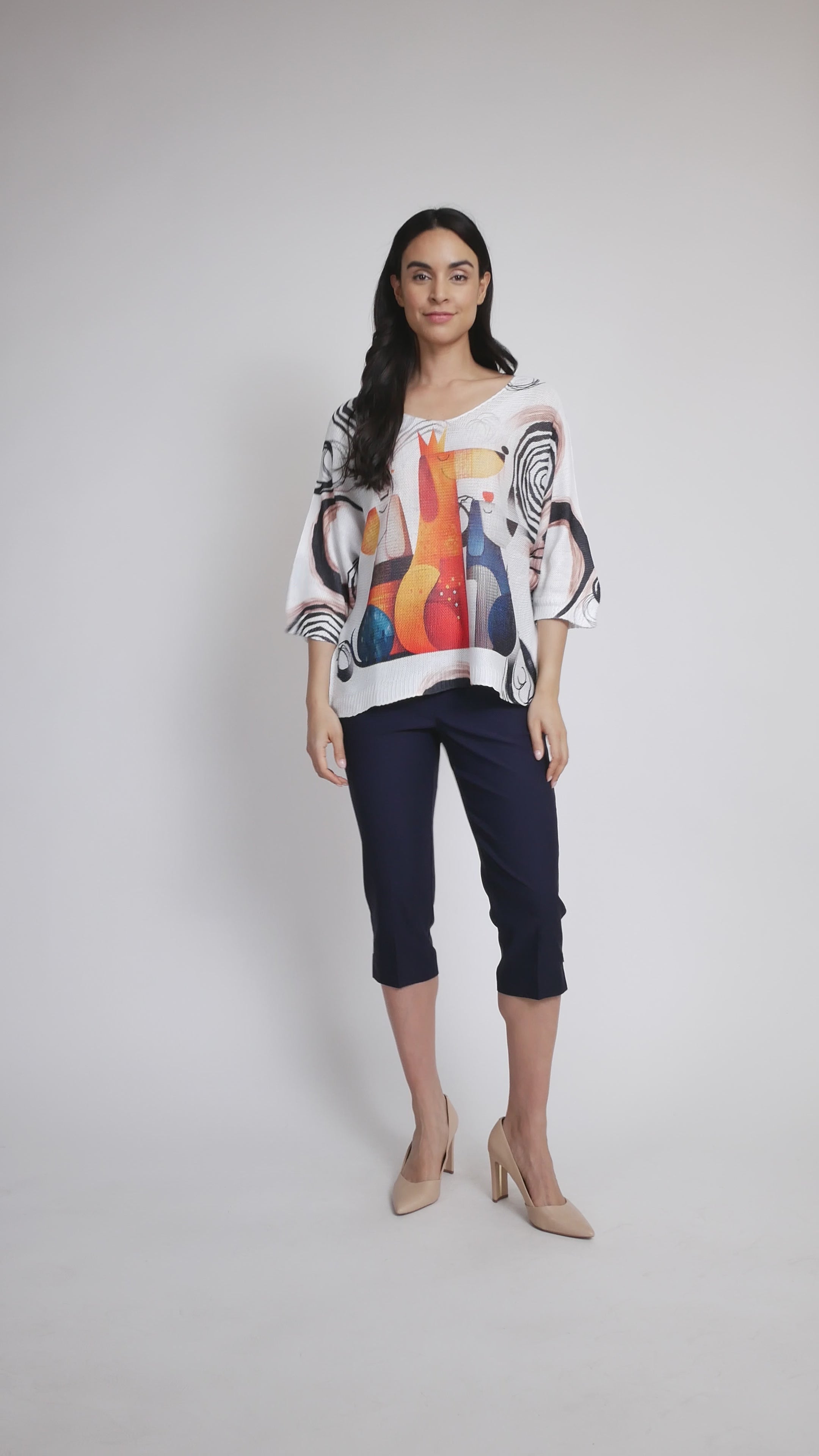 De ravissants imprimés de chiots ornent ce pull en maille Via Vitale, confectionné en Italie avec une qualité irréprochable. Ses manches dolman 3/4 décontractées et son encolure en V flatteuse créent une silhouette chic et naturelle, idéale pour les journées casual ou les soirées cocooning. La maille douce enveloppe la peau de douceur tandis que le motif chien fantaisiste apporte une touche d'originalité à votre garde-robe. Une pièce ravissante qui célèbre votre amour des animaux et de la fantaisie.
