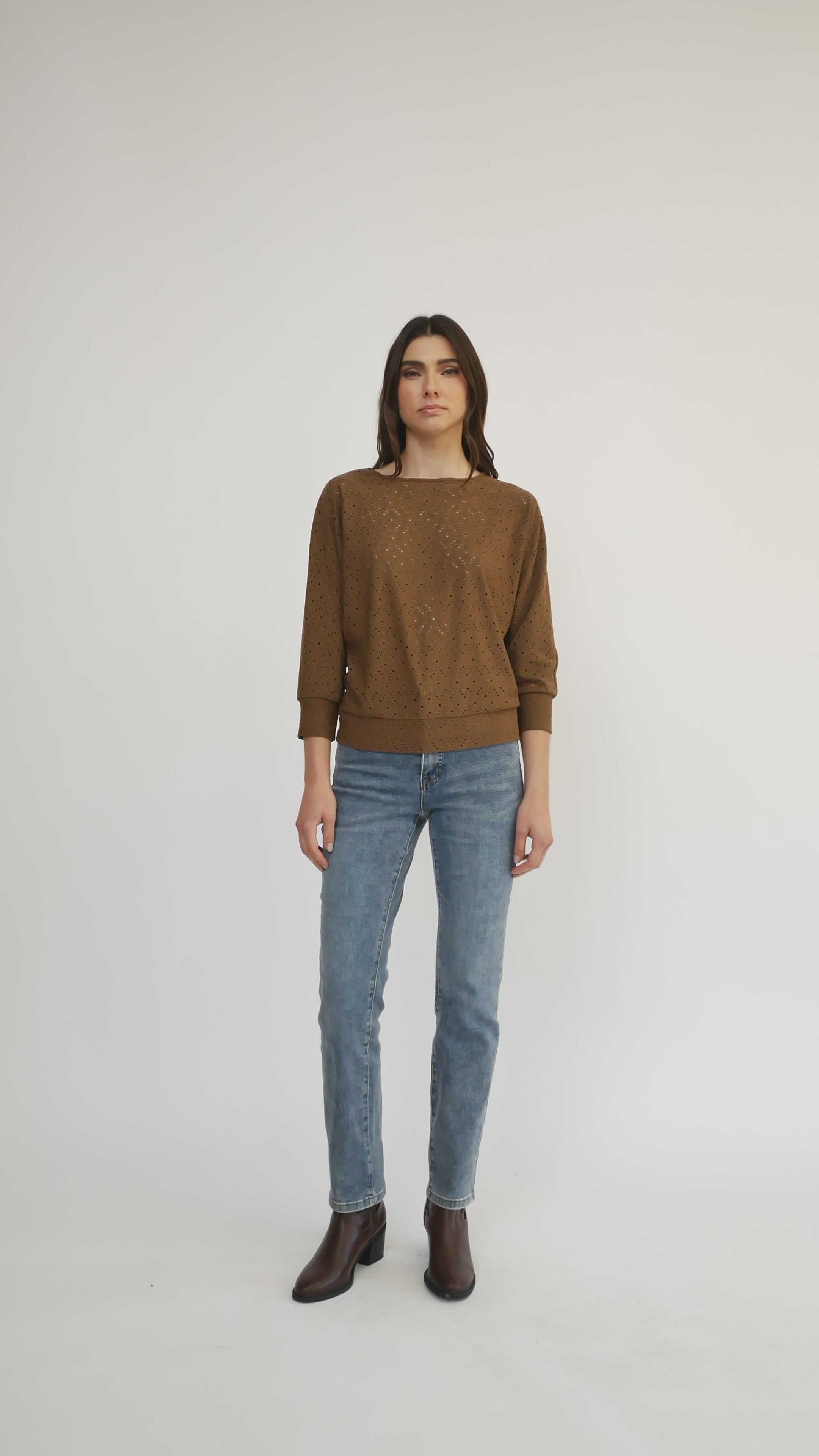 Chic et confortable sans effort, ce top à manches dolman et œillets apporte une touche d'élégance décontractée à votre garde-robe quotidienne. Ses manches 3/4 fluides tombent à merveille, tandis que les délicats œillets ajoutent une note féminine. Confectionné dans une maille douce et souple, ce modèle à col rond est parfait à superposer ou à porter seul. Fabriqué ici même au Canada et disponible exclusivement chez Cazza Petite et Zacks Fashions, c'est un indispensable de votre garde-robe, aussi agréable à porter qu'à regarder.