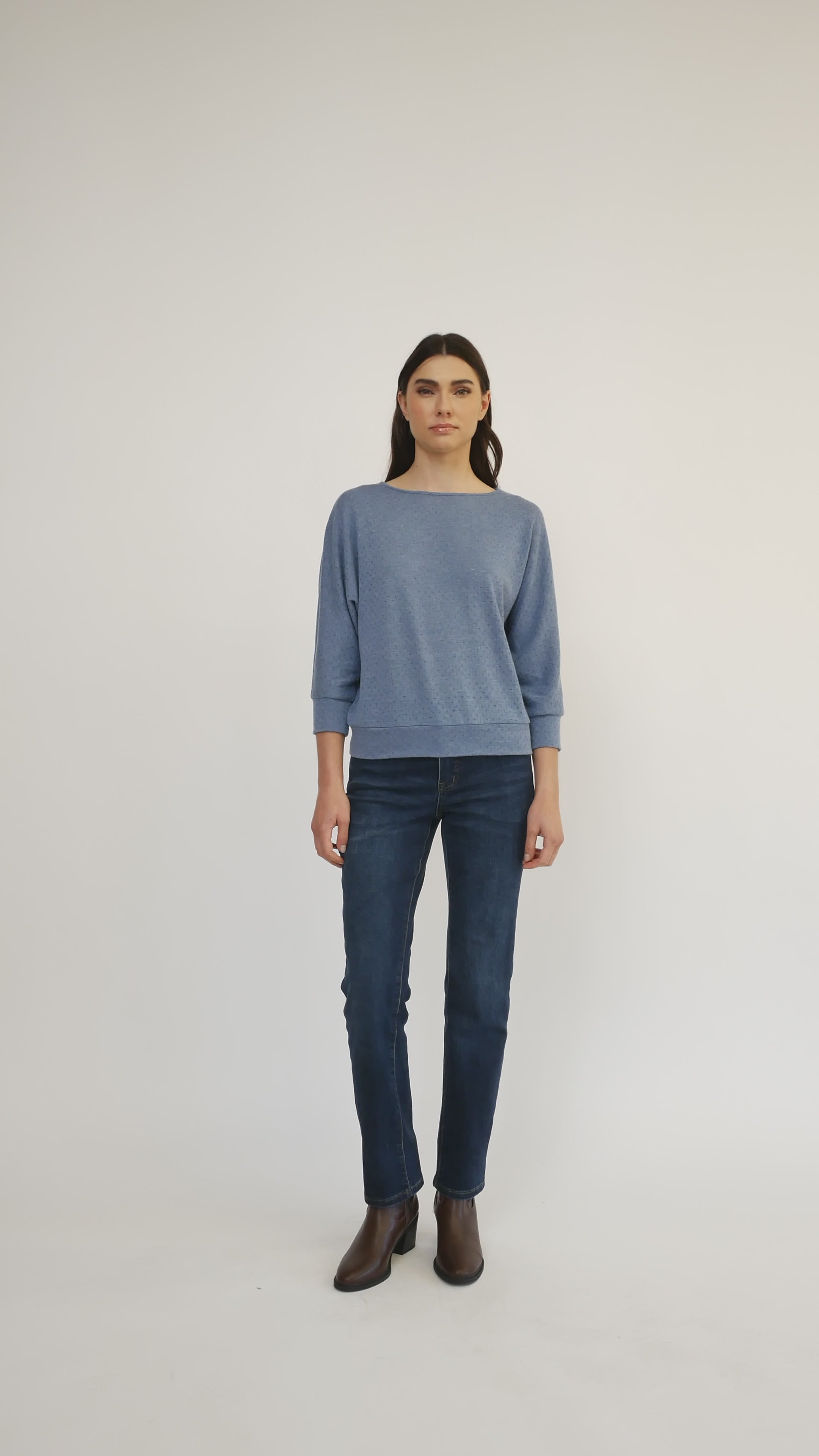 Ce haut texturé à manches dolman est doté de manches 3/4 confortables et d'une rond classique, confectionné en maille douce. Fièrement fabriqué au Canada, c'est une pièce exclusive pour Cazza Petite & Zacks, parfaite pour ajouter une touche chic et douillette à votre style quotidien.