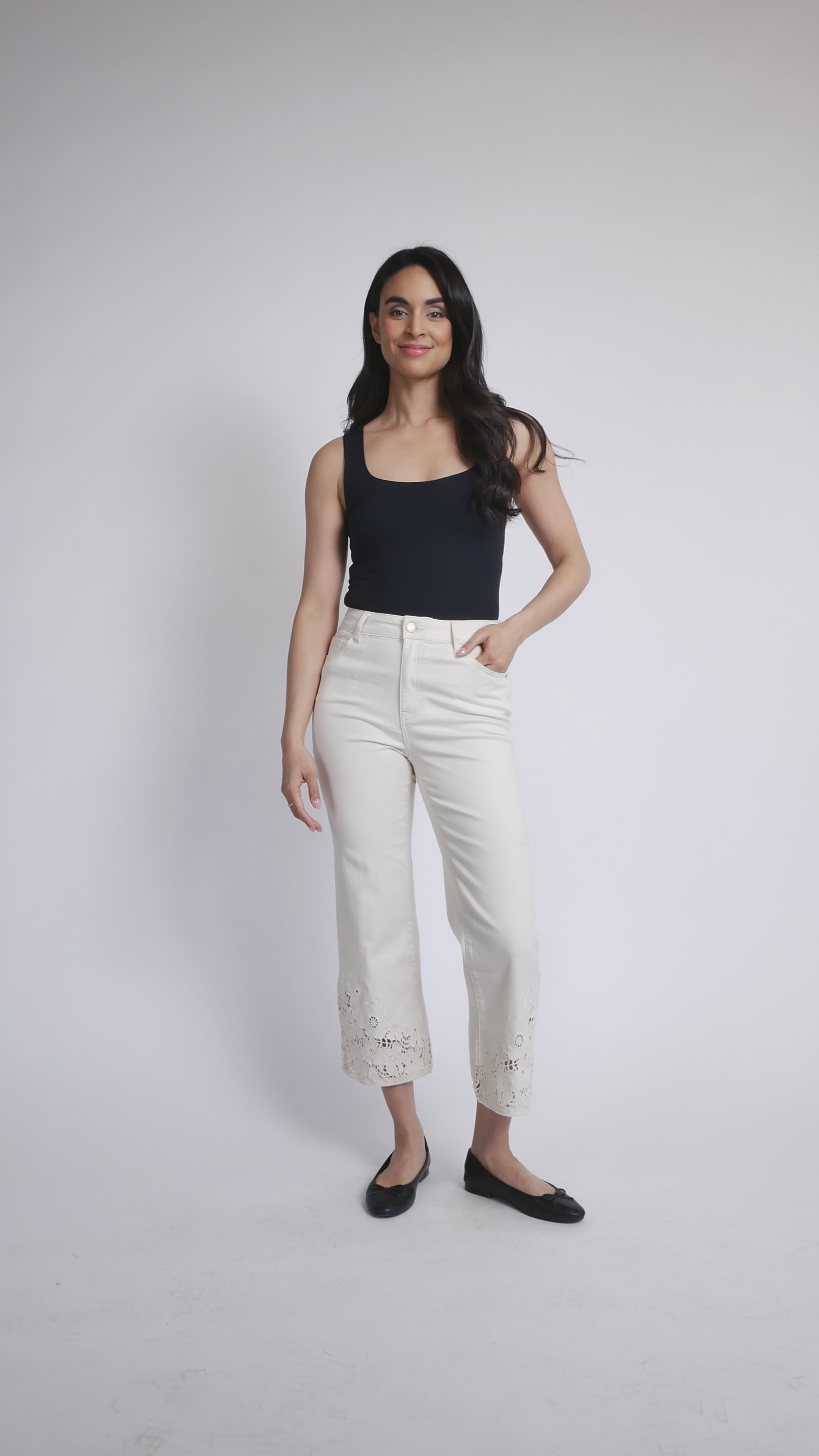 Affirmez votre style avec ce jean Charlie B qui insuffle une touche rétro à votre garde-robe quotidienne. Sa coupe flatteuse, avec une taille régulier et les jambes évasées, est confectionnée dans un mélange de coton confortable qui accompagne vos mouvements. Les cinq poches permettent de garder vos essentiels à portée de main, tandis que la délicate broderie laser à l'ourlet ajoute une note d'originalité. Fermeture zippée et boutonnée avec passants de ceinture pour un look denim classique, parfait pour un look décontracté ou plus habillé.