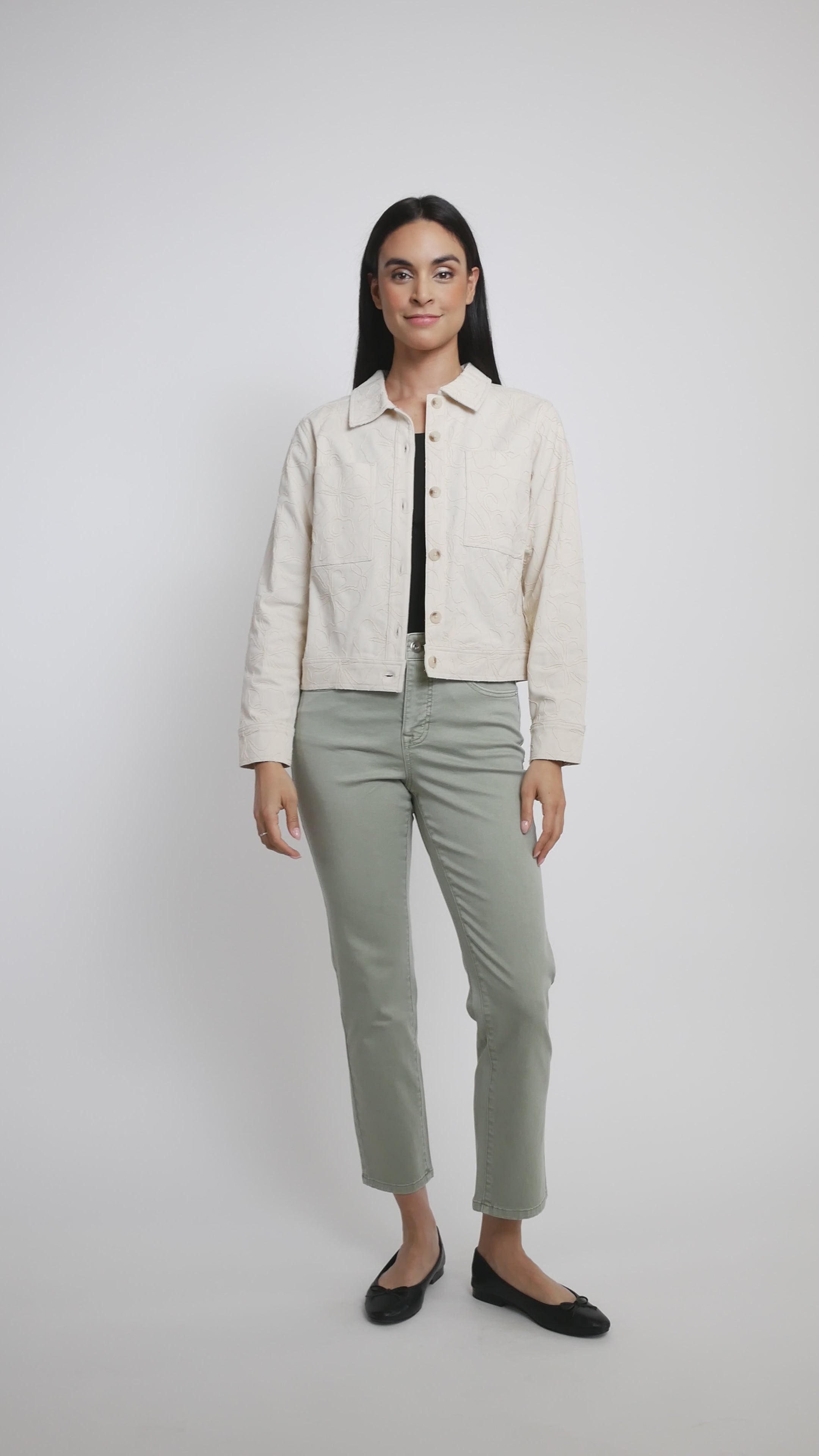 La veste en denim à broderie florale