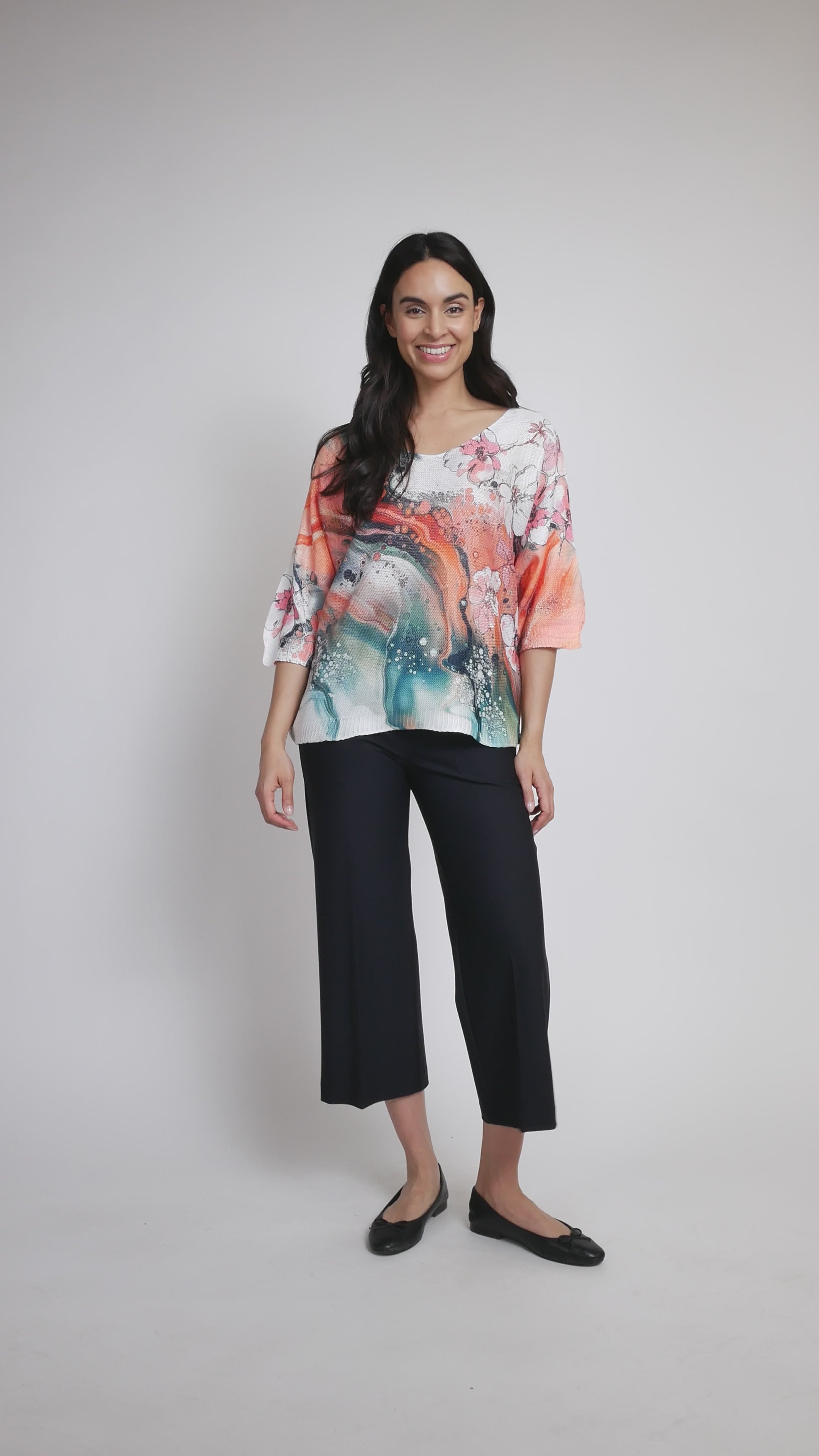 Sublimez votre style au quotidien avec ce charmant pull Via Vitale, confectionné en Italie avec un soin méticuleux. Son imprimé marbré floral apporte une touche de fantaisie à votre garde-robe, tandis que ses manches dolman 3/4 décontractées créent une silhouette chic et naturelle. La maille douce offre un drapé élégant et le décolleté en V flatteur assure une allure moderne et fraîche. Parfait à superposer ou à porter seul, ce pull apporte une sophistication ludique à toutes vos tenues.