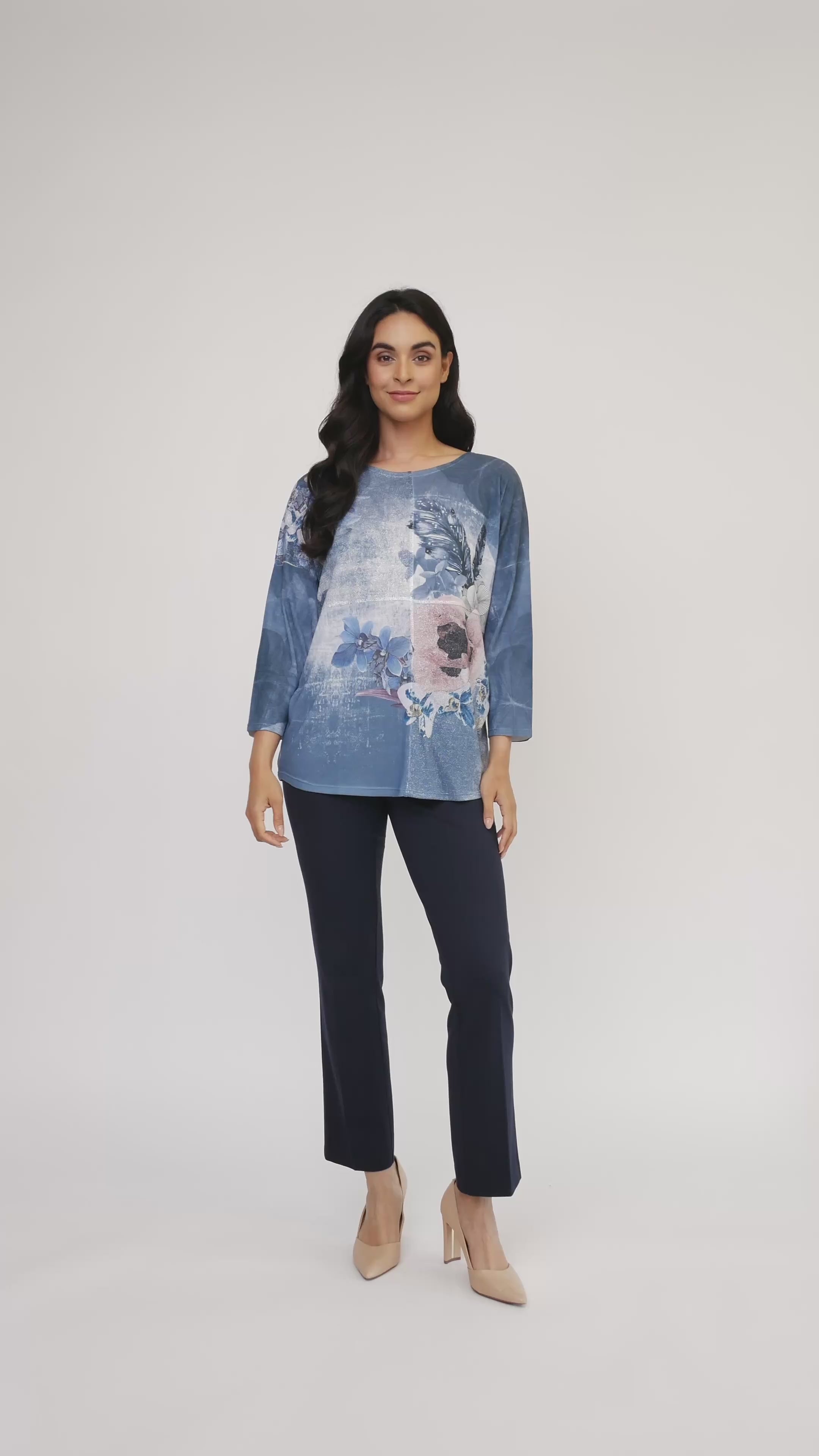 Cette tunique à imprimé floral apporte une touche d'originalité à votre garde-robe avec ses manches 3/4 tombantes et son charmant col rond. Confectionnée en maille extensible douce avec des détails en Lurex scintillants, elle offre confort et subtile brillance. Fabriquée en Italie par Via Vitale, cette tunique allie qualité et style pour vos aventures du quotidien.