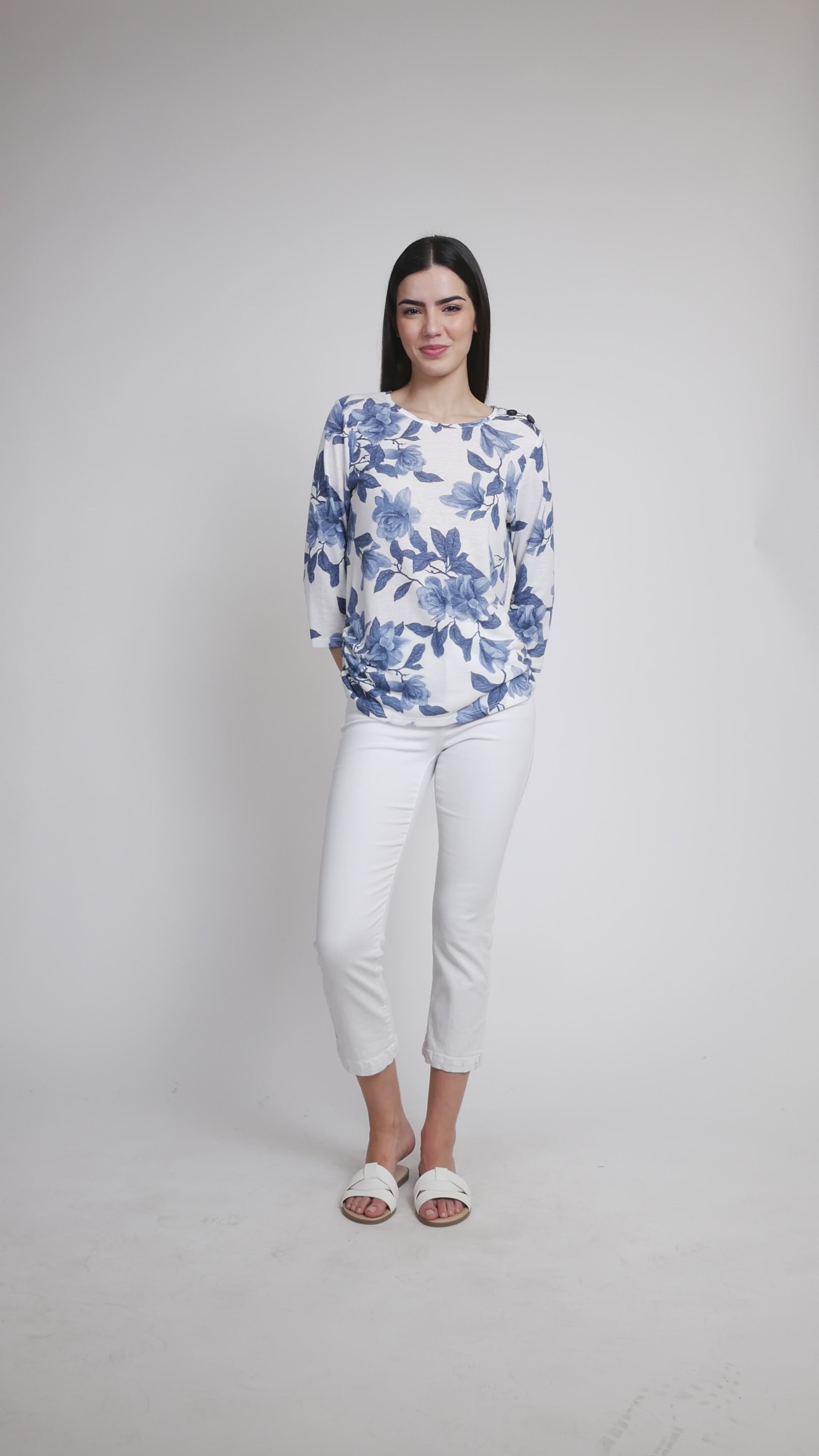 Ce haut fabriqué au Canada apporte une touche d'audace à votre garde-robe. Confectionné dans un mélange de lin respirant, il présente une encolure rond décontractée et des manches trois-quarts pour un style chic et naturel. Des boutons originaux aux épaules et des fronces flatteuses sur les côtés créent du volume, tandis que l'ourlet légèrement arrondi lui confère une allure moderne et fraîche. Suffisamment polyvalent pour être porté de façon décontractée ou habillée, c'est le genre de pièce que vous porterez sans cesse.