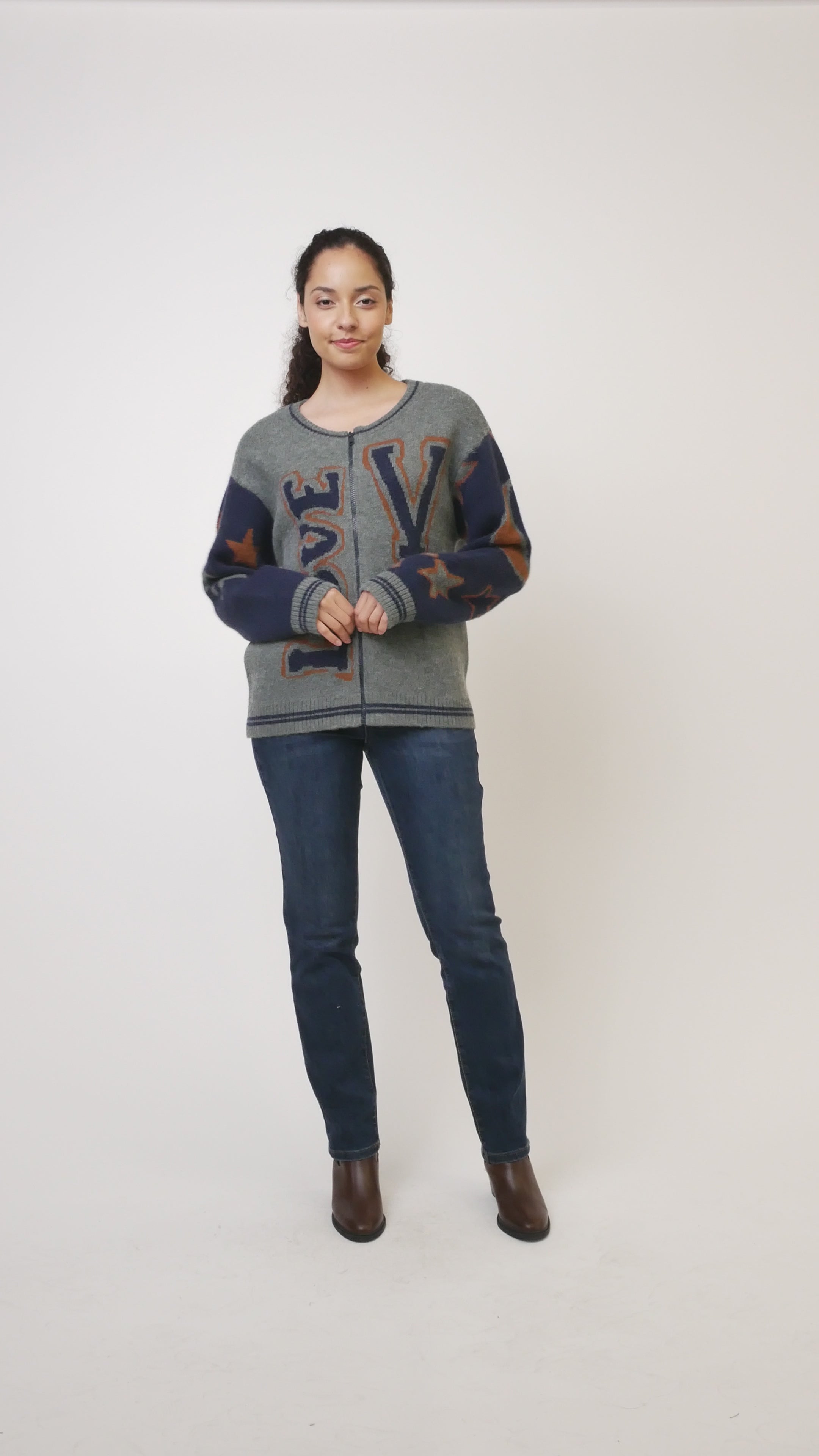 Restez confortable et mignonne avec le cardigan Love U de Carré Noir. Ce tricot ludique présente une encolure ronde et une fermeture zippée sur le devant, ce qui le rend facile à superposer sur vos tenues préférées. Avec ses manches longues et son tissu doux, il est parfait pour ajouter une touche de chaleur et de charme à n'importe quel look.