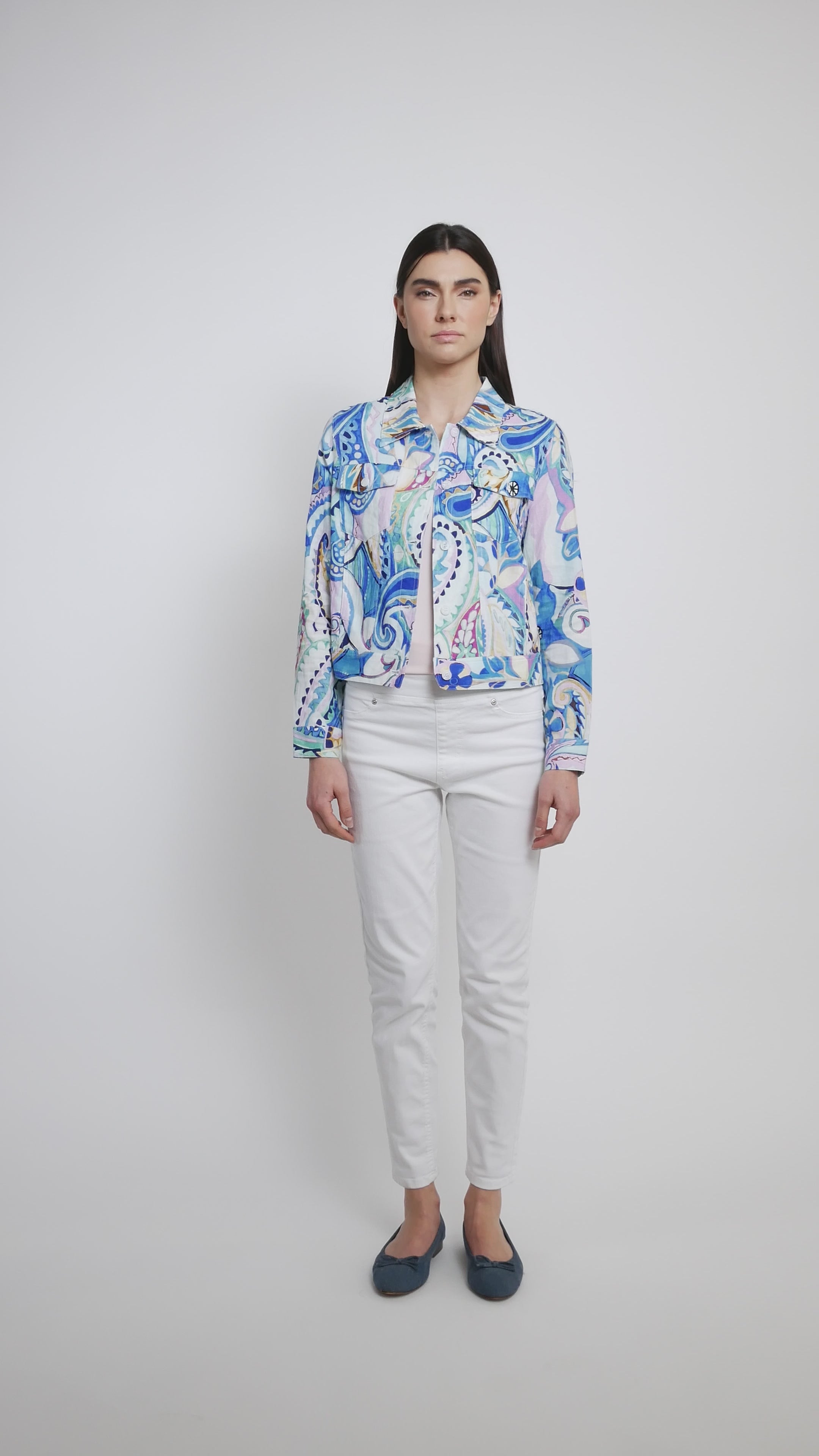 Rehaussez votre style au quotidien avec cette charmante veste à imprimé cachemire signée Alison Sheri. Confectionnée dans un mélange de lin respirant, elle présente un col chemise classique, une fermeture boutonnée et des poches à rabat pratiques qui ajoutent une touche de sophistication. Ses manches longues la rendent idéale pour la superposition en toute saison, tandis que son motif cachemire intemporel apporte du caractère à toutes vos tenues. Que ce soit pour rehausser un look décontracté ou apporter une touche d'élégance à vos basiques, cette veste polyvalente deviendra vite votre pièce incontournable.