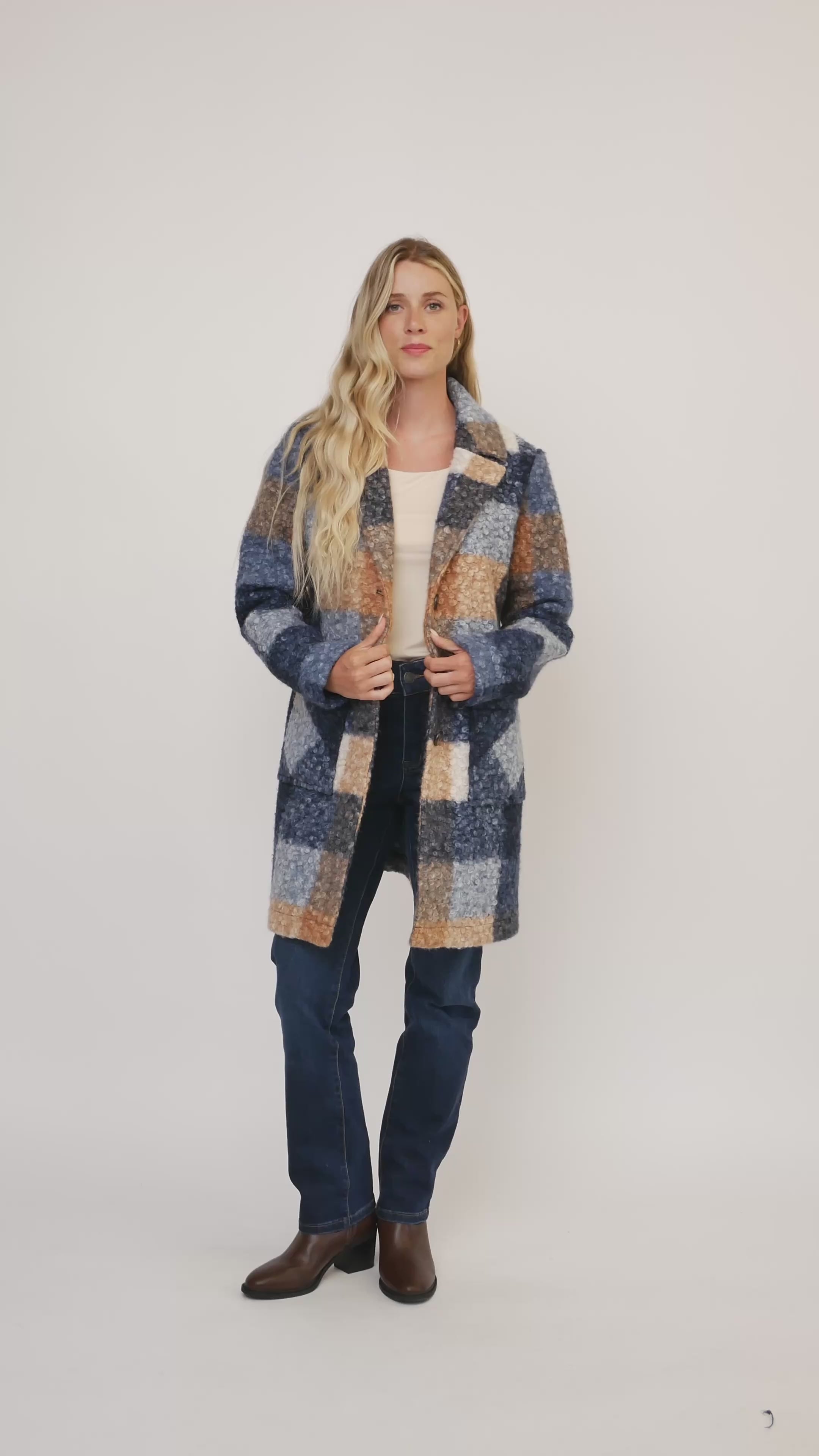 Cette veste en tissu bouclé à carreaux signée Charlie B est dotée d'un charmant col cranté et d'une fermeture boutonnée sur le devant pour un enfilage facile. Dotée de poches plaquées pratiques et d'une coupe non doublée, elle offre un confort léger et une touche vintage. Idéale pour ajouter une touche cosy et élégante à votre tenue !