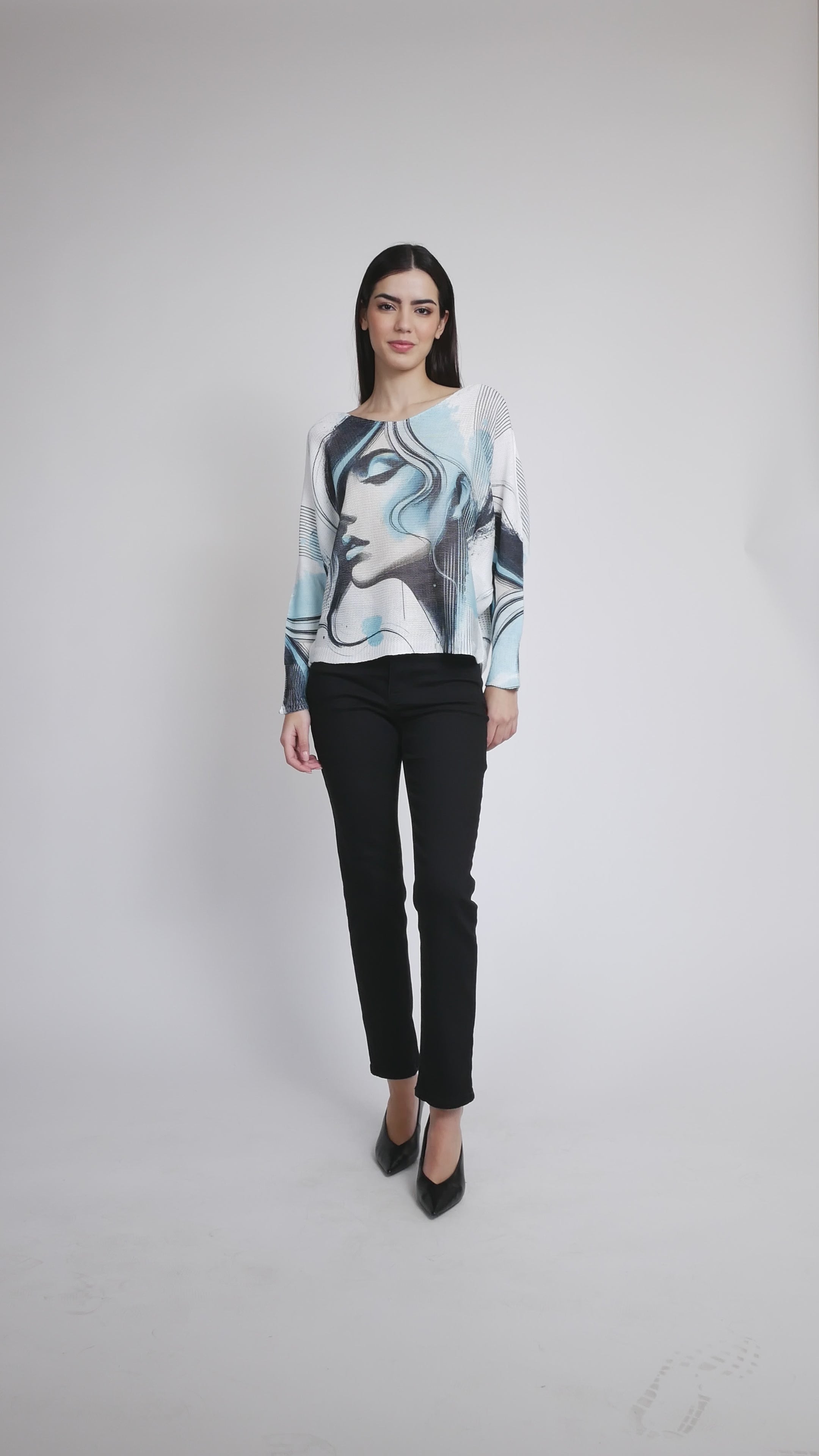Laissez-vous séduire par l'élégance italienne avec ce charmant pull à imprimé portrait signé Via Vitale. Confectionné dans une maille douce et luxueuse, il présente un décolleté en V flatteur et des manches dolman fluides et élégantes. Fabriqué en Italie, ce pull apporte une touche de sophistication européenne à votre garde-robe quotidienne : idéal à superposer ou à porter seul.