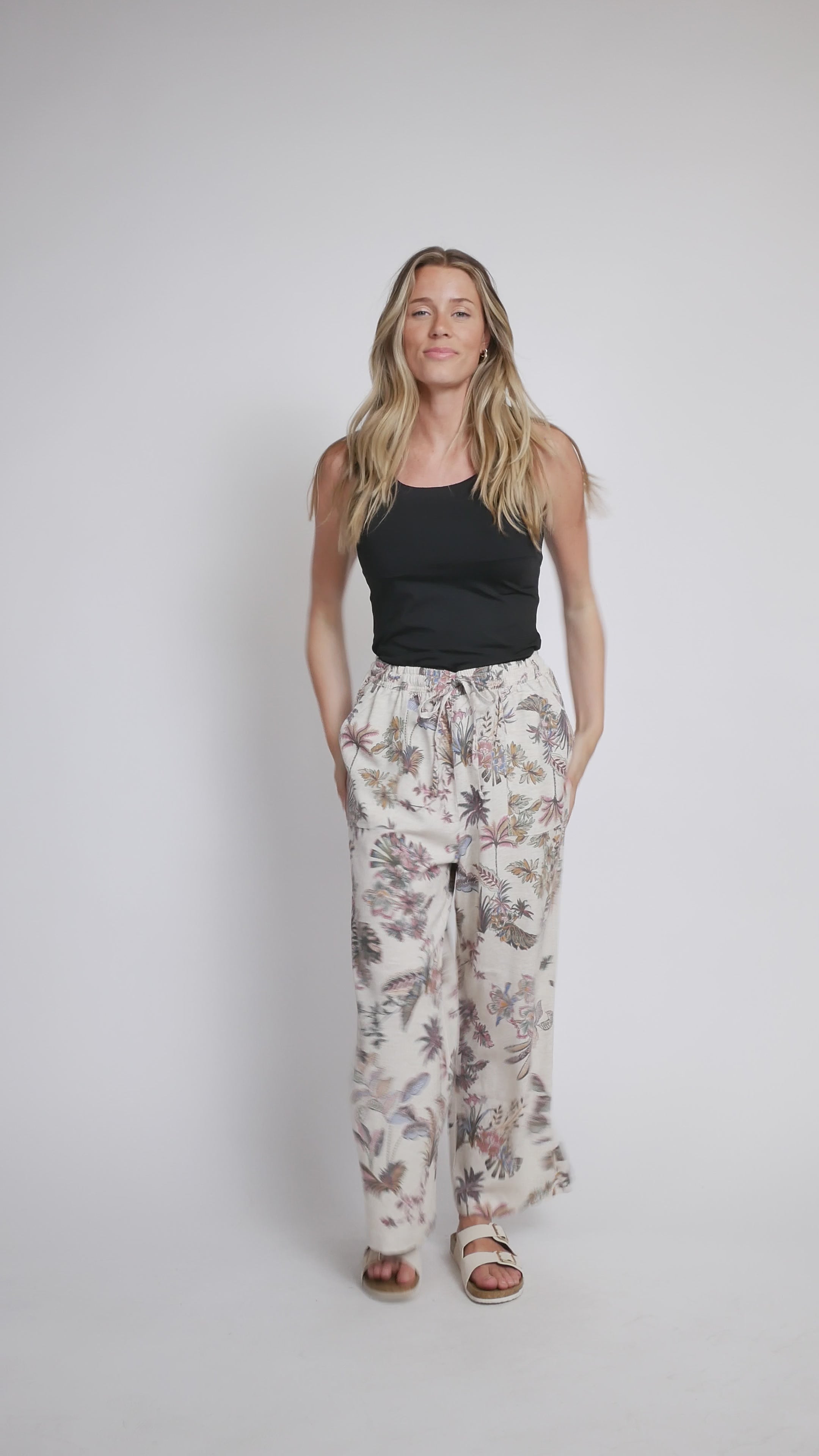 Le pantalon imprimé en mélange de coton et lin