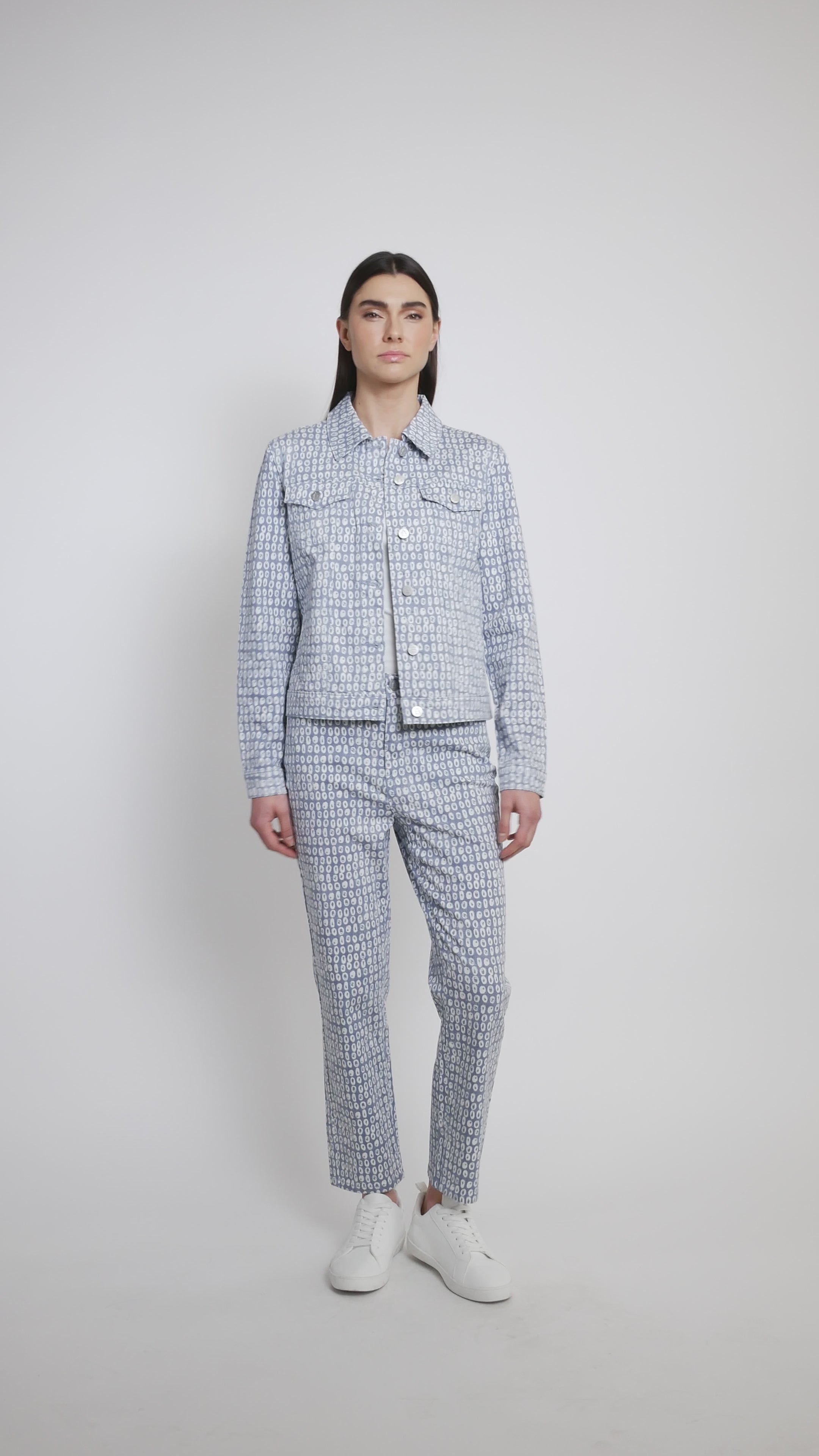 Rehaussez votre style denim avec cette charmante veste imprimée signée Alison Sheri ! Confectionnée dans un mélange de coton confortable, elle présente un col chemise classique, une fermeture boutonnée et des poches à rabat pratiques au quotidien. L’imprimé apporte une touche d’originalité à toutes vos tenues, tandis que les manches longues permettent de superposer les vêtements à votre guise. Disponible en tailles Petite et Régulier, cette veste est conçue pour sublimer votre silhouette et vous accompagner dans tous vos mouvements. Parfaite pour une sortie décontractée ou pour rehausser votre jean préféré. À coordonner avec le modèle A47179C.