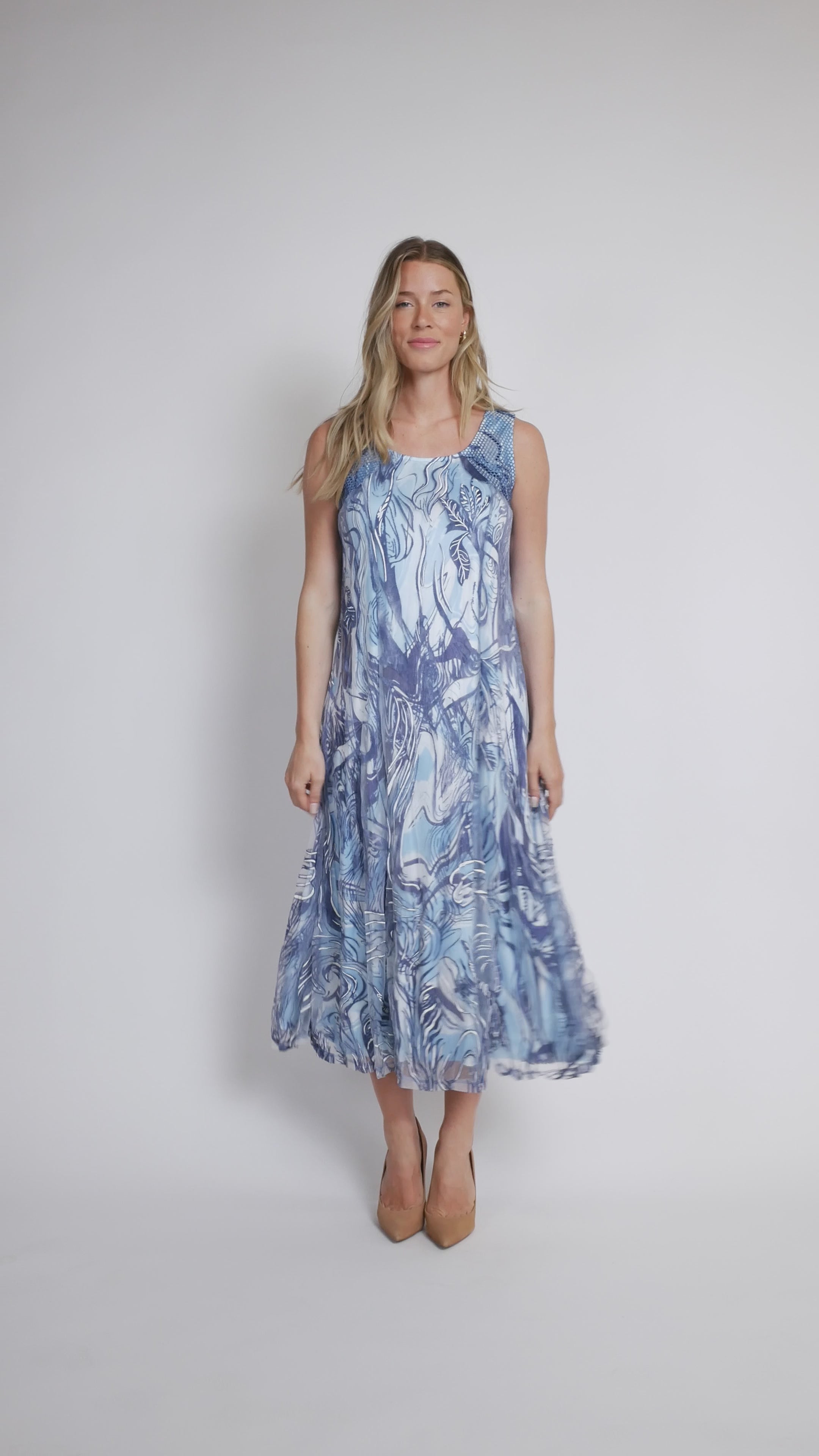 Cette ravissante robe Picadilly allie style et décontraction grâce à son imprimé et son élégant tissu plissé. Sa coupe sans manches assure une allure fluide, tandis que son encolure rond classique lui confère un charme intemporel. Doublée pour un confort optimal, elle est idéale en toutes occasions, des sorties décontractées aux événements spéciaux. Un indispensable de votre garde-robe, aussi polyvalent que vous !