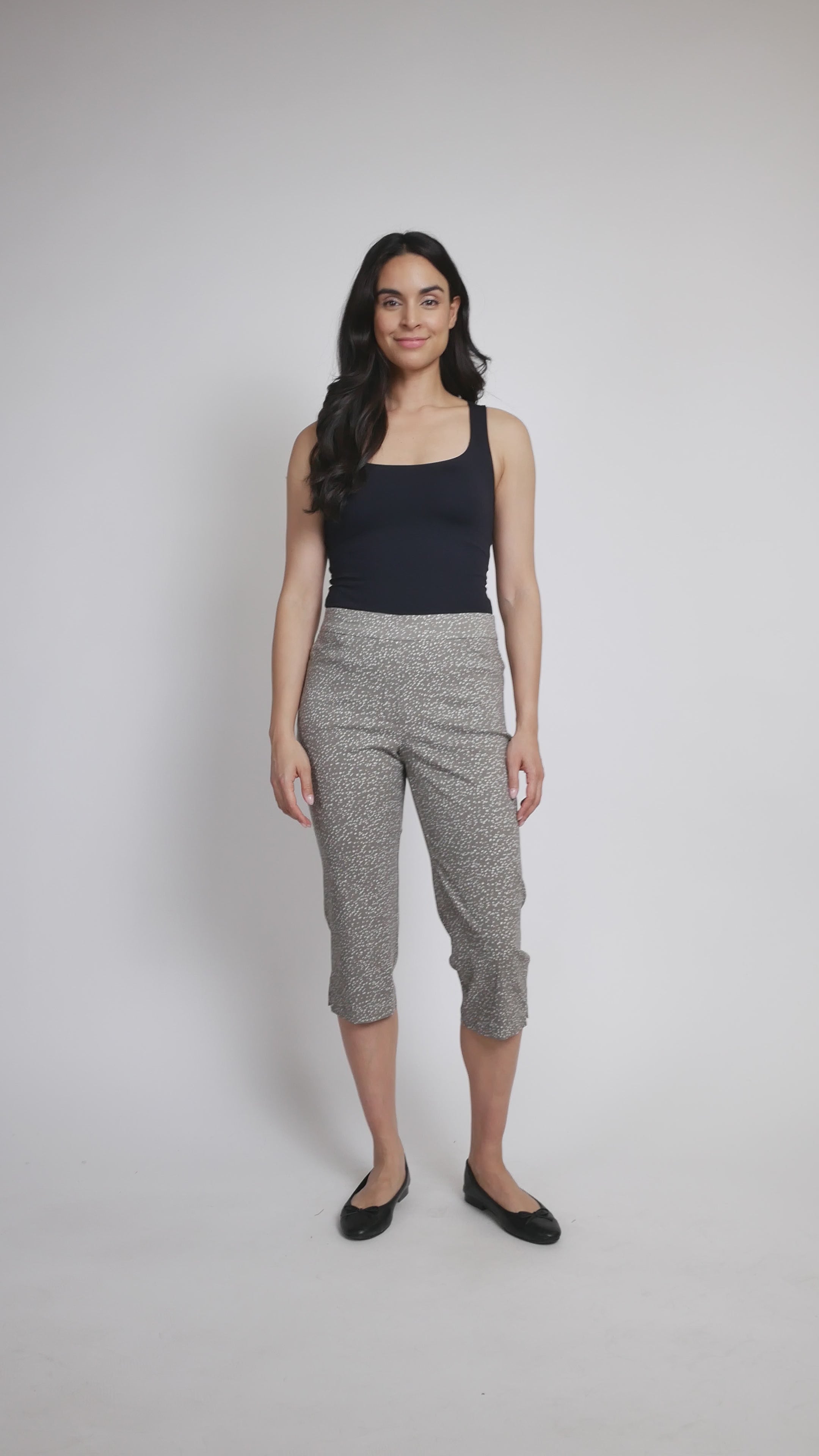 Ce capri imprimé allie confort et style contemporain. Facile à enfiler grâce à sa taille élastiquée, il est idéal pour un look décontracté. Son tissu bengaline structuré offre une allure soignée tout en garantissant un confort optimal tout au long de la journée. Les fentes latérales flatteuses apportent mouvement et originalité à la silhouette. Un choix parfait pour les sorties entre amis ou les week-ends détente, signé Cazza Petite et Zacks.