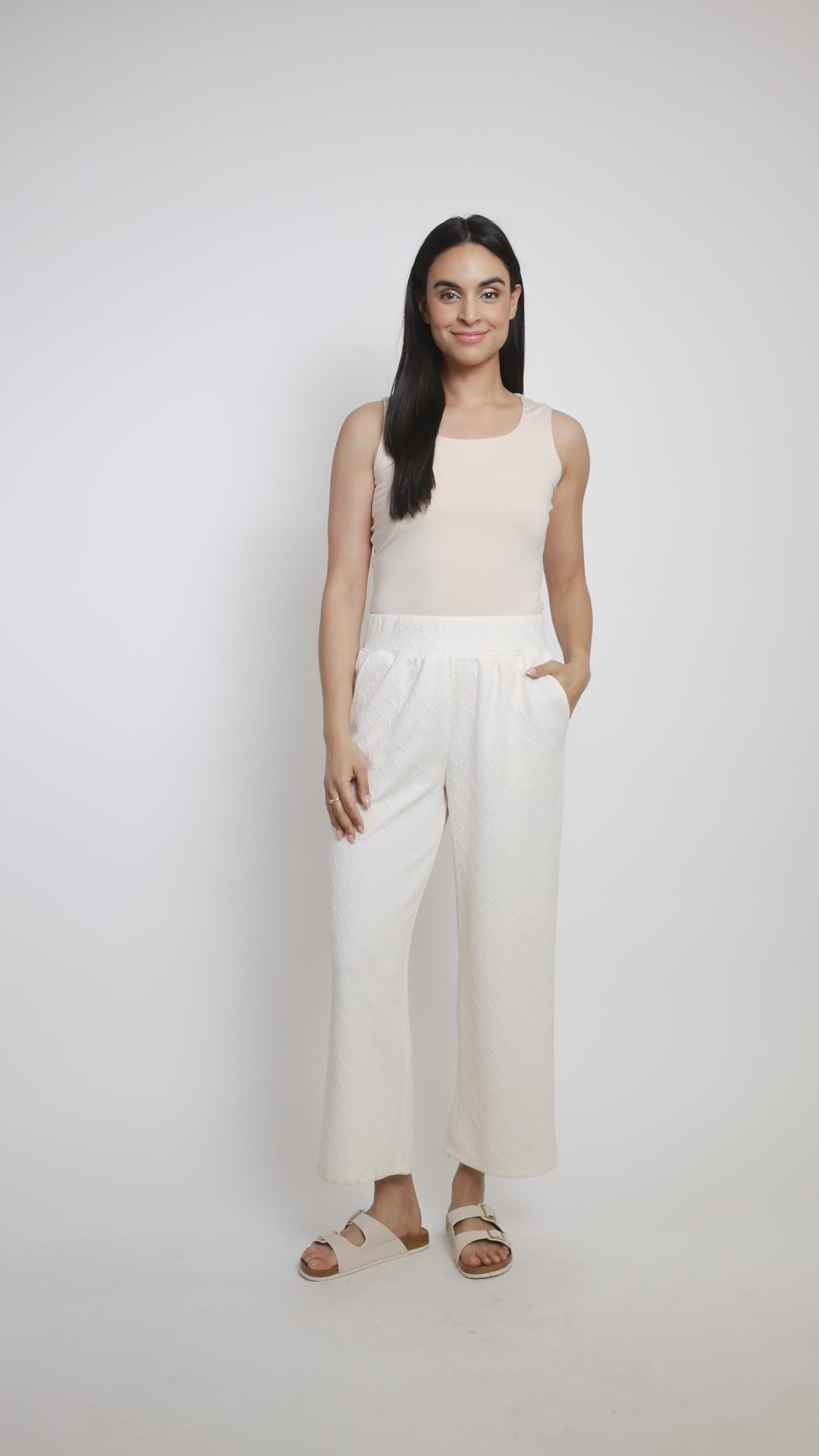 Adoptez un style décontracté et élégant avec ce pantalon en maille à jambes larges de Tribal. Facile à enfiler grâce à sa taille élastique extensible, il vous assure un confort optimal toute la journée. Sa maille texturée à losanges apporte une touche d'originalité, tandis que sa coupe ample vous garantit une allure fluide et décontractée. Poches pratiques ? Bien sûr ! Associez-le au haut 2463AR-8422 pour créer un look coordonné parfait. L'élégance à l'état pur.