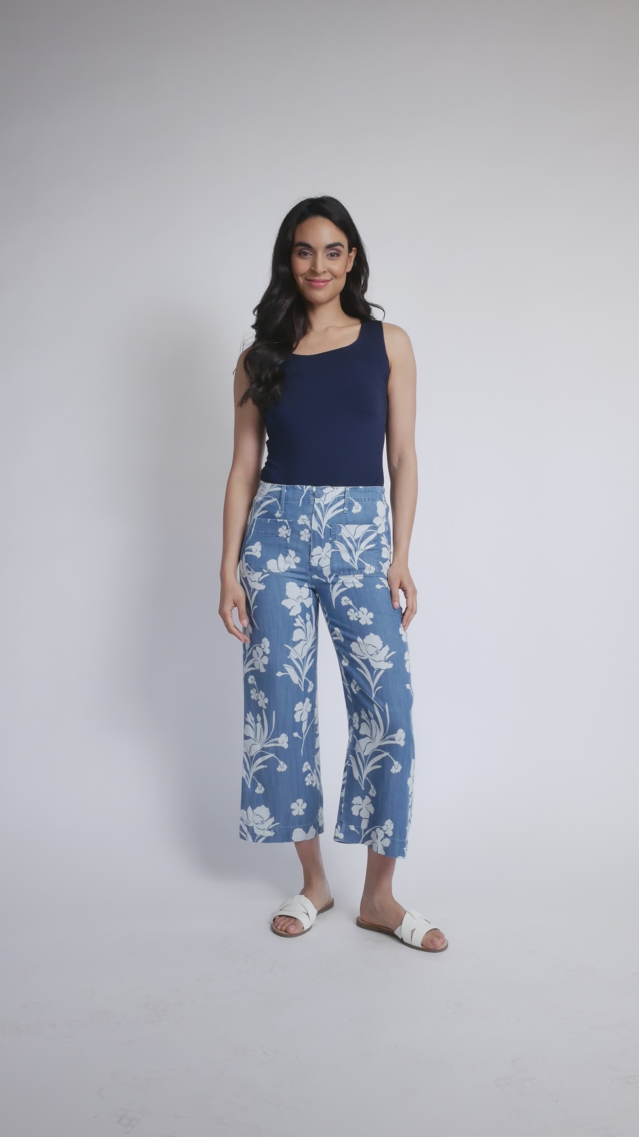 Affichez votre style avec ce superbe capri à jambes larges, alliant confort et élégance. Confectionné en Tencel Lyocell texturé, il est respirant et offre un drapé fluide et naturel. Son motif floral apporte une touche de personnalité, tandis que ses détails pratiques, comme les poches fonctionnelles, les passants de ceinture et la fermeture éclair et boutonnée sur le devant, le rendent à la fois chic et pratique. Idéal pour rehausser votre look quotidien d'une note botanical .