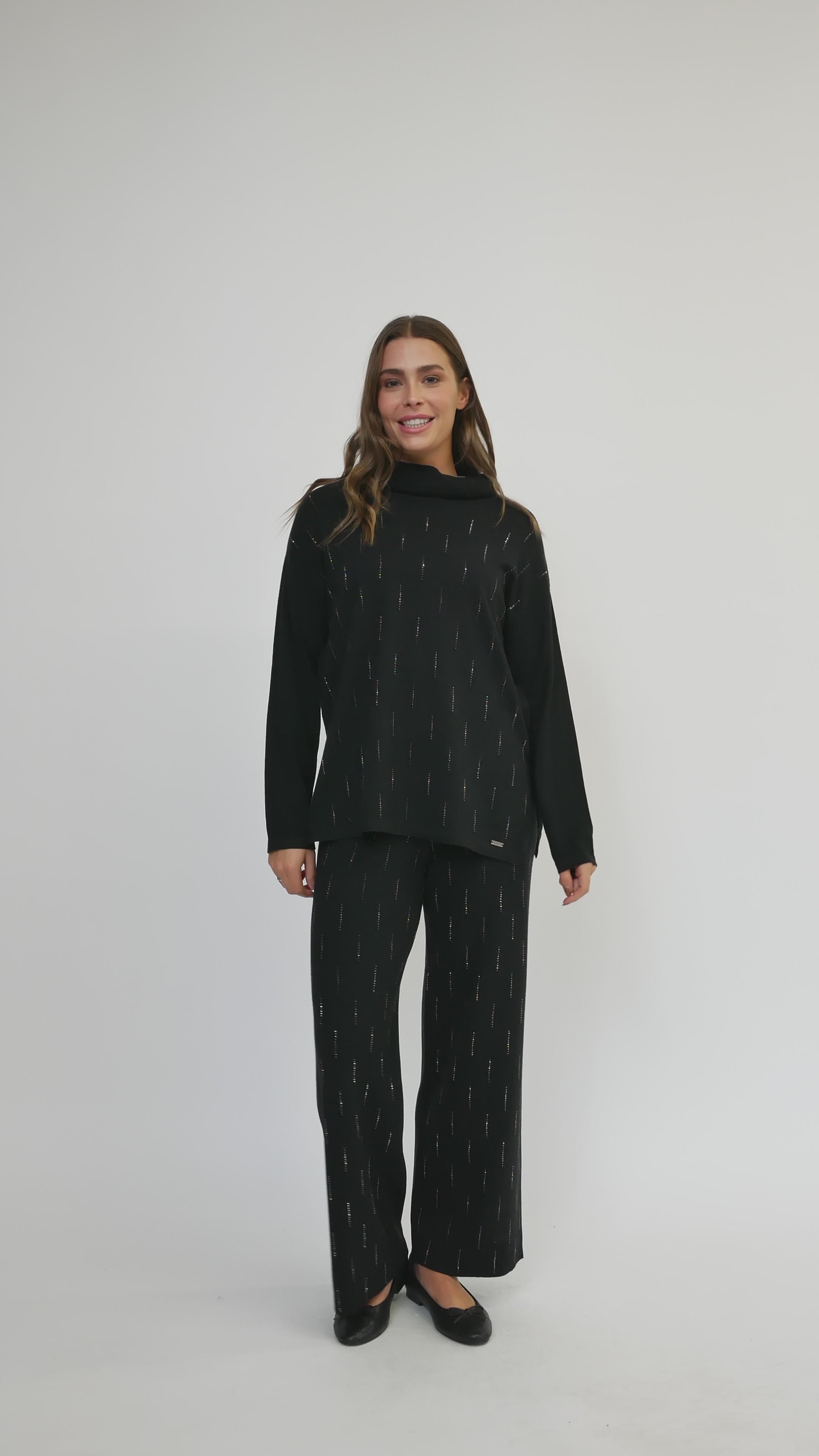 Affichez votre style avec ce pantalon jambe large signé Picadilly. Doté d'une taille élastique confortable, il est facile à enfiler, idéal pour les journées chargées ou les week-ends décontractés. Sa maille est douce au toucher, tandis que ses strass scintillants ajoutent une touche de glamour et de fantaisie. Parfaitement coordonné à la tunique FE153-PC, ce pantalon apporte confort et brillance à votre garde-robe.