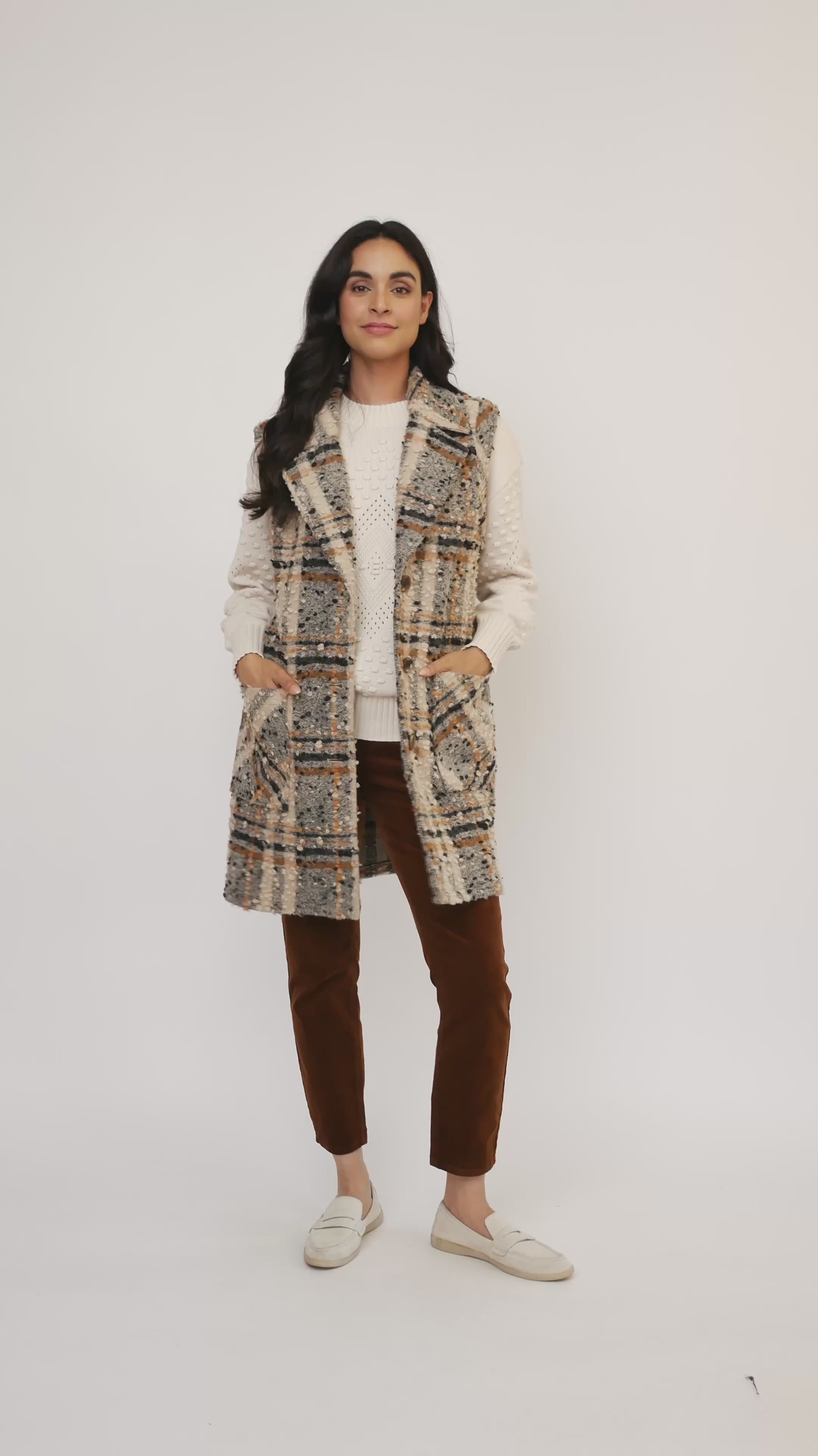 Le gilet à carreaux en laine mélangée