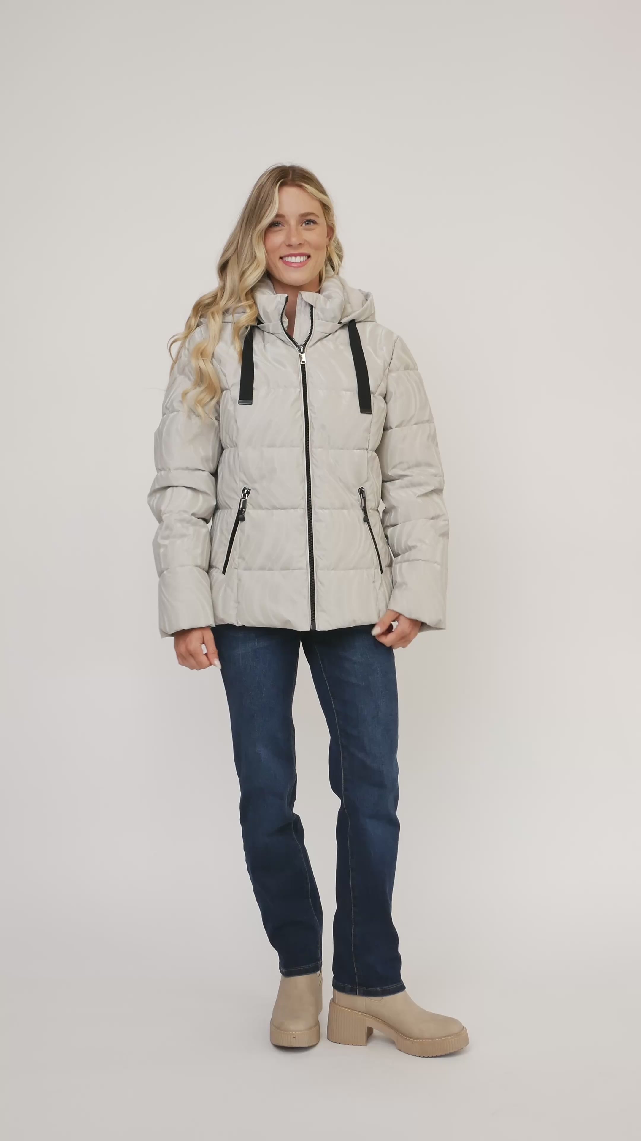 Stay cozy and stylish in this Abstract Print Polyfill Jacket by Carre Noir. Featuring a stand-up collar and zip front closure, it’s perfect for layering on chilly days. The removable hood with adjustable cord adds versatility, while zippered hand pockets keep your essentials safe. Crafted from quilted fabric, this jacket offers warmth without bulk. Available in both Petite and Regular fits, it’s designed to flatter every shape.