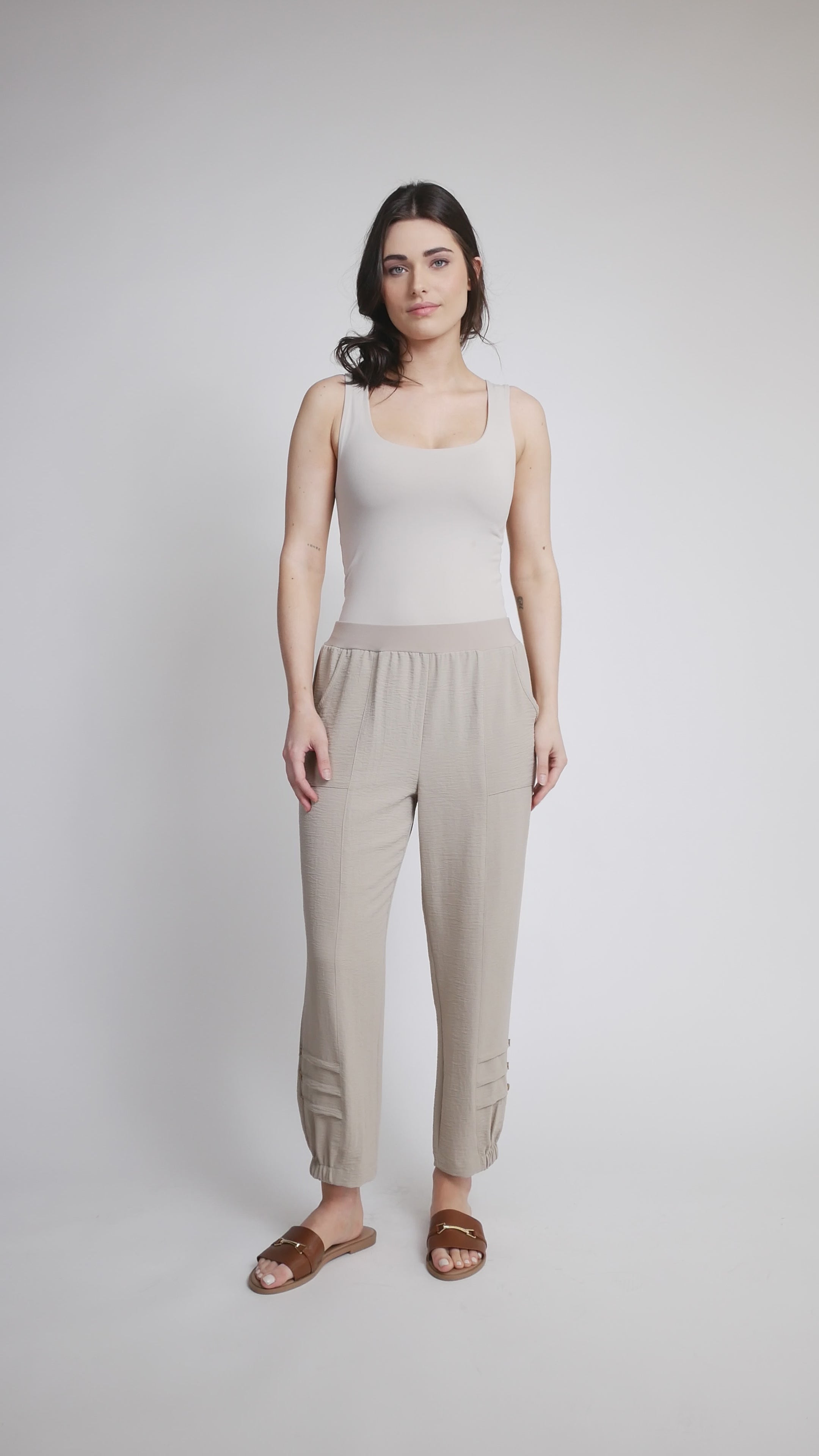 Experience effortless comfort with these Air Flow pull-on pants, designed for the modern lifestyle. Featuring a slim leg silhouette, elastic waistband and hemline for easy movement, and practical hand pockets. The breathable Air Flow fabric keeps you cool throughout the day. Pull on and go—no zippers needed. Pair with top style 70221 to complete your look. Proudly made in Canada for Cazza Petite and Zacks.