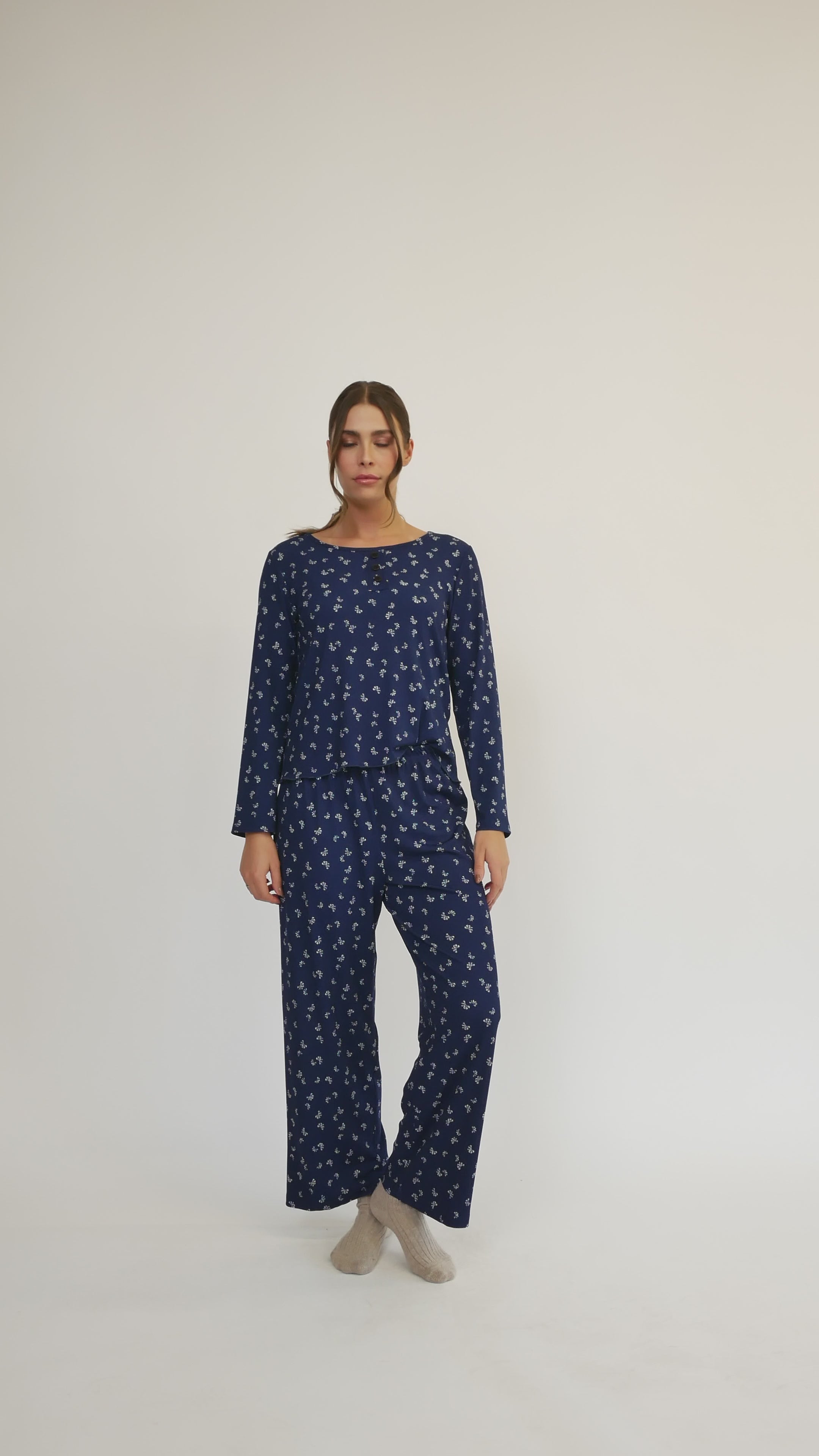 Bow print rib knit pyjama set