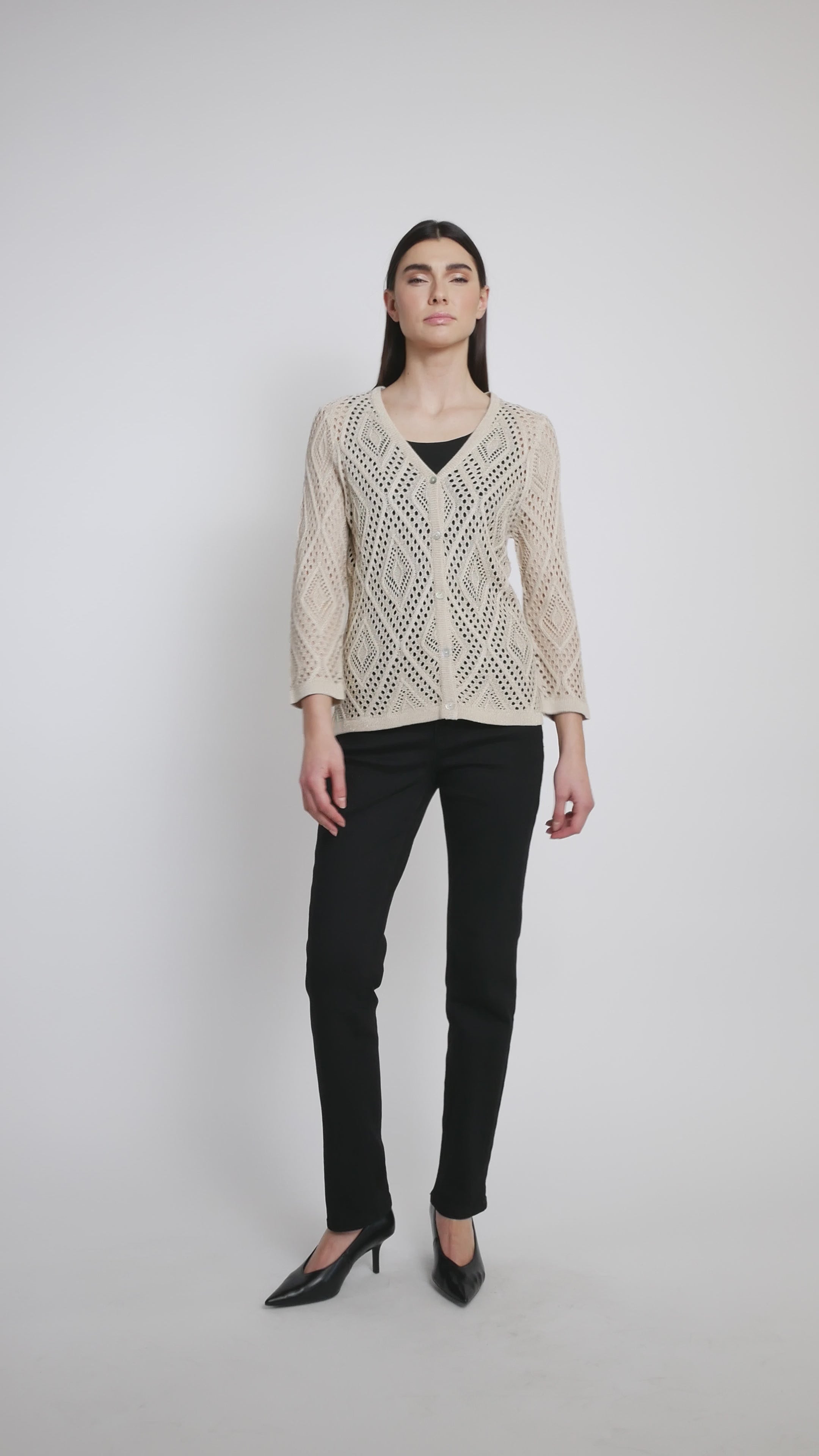 Elevate your everyday style with this stunning cardigan by Alison Sheri. Crafted from soft knit fabric with shimmering lurex accents, this long-sleeve beauty features delicate crochet detailing that adds texture and visual interest. The convenient button-front closure makes layering effortless, whether you're dressing up for a night out or keeping cozy at home. Perfect for adding a touch of sparkle and sophistication to any outfit!