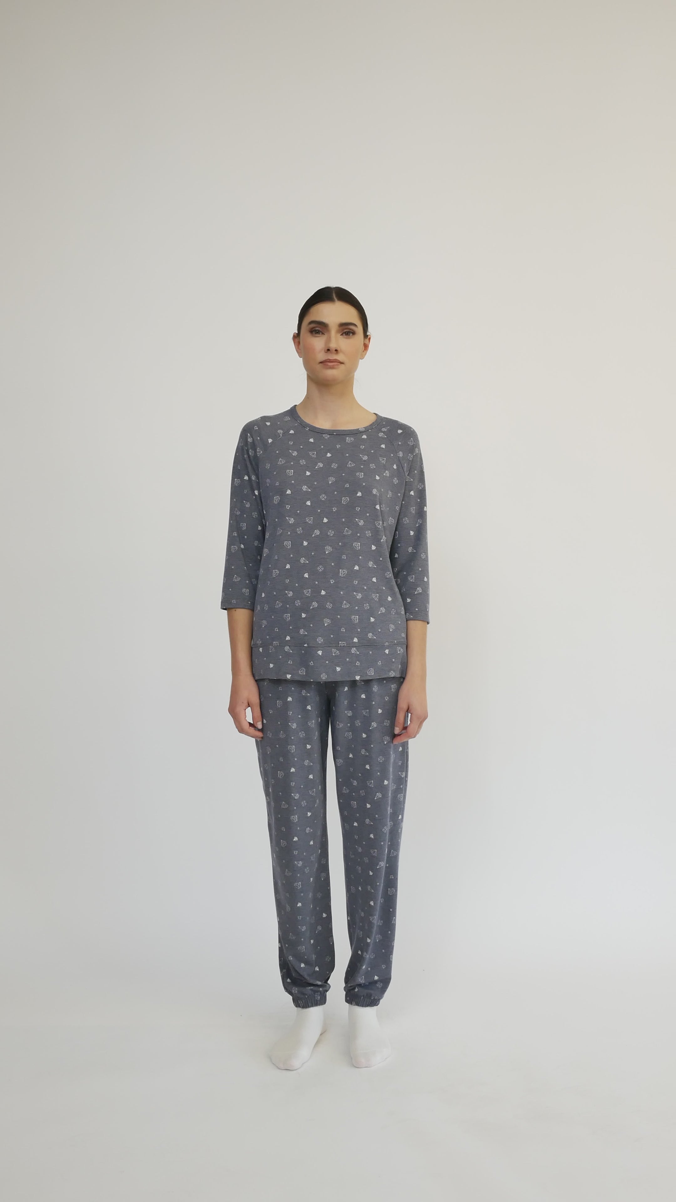 Cozy up in the diamond design loungewear set, crafted exclusively for Cazza Petite & Zacks. This duo features a long sleeve top with a comfy crew neckline and trendy side slits for a flirty twist, paired with straight-leg knit pants boasting an elastic waistband and hemline for the perfect relaxed fit. Made in Canada with soft, breathable fabric, it’s your go-to for effortless style and all-day comfort. Perfect for lounging or casual days out!