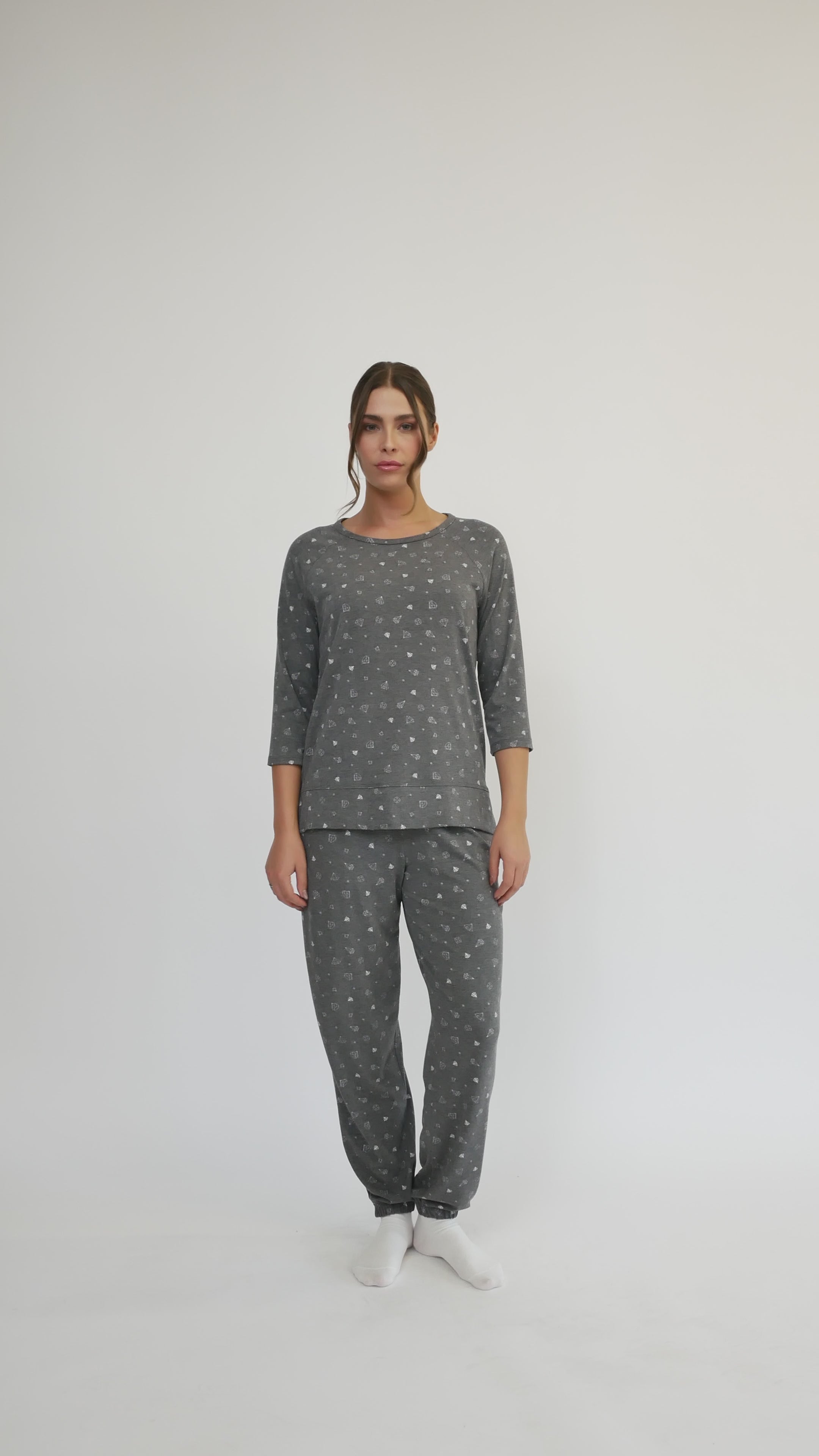 Cozy up in style with our exclusive diamond design loungewear set, crafted right here in Canada just for you! This two-piece features a long sleeve top with a classic crew neckline and chic side slit detail, paired with comfortable straight leg pants complete with an elastic waistband and hemline. Made from soft knit fabric, it's the perfect blend of comfort and effortless style for relaxing at home or running errands. A Cazza Petite & Zacks exclusive you won't find anywhere else!