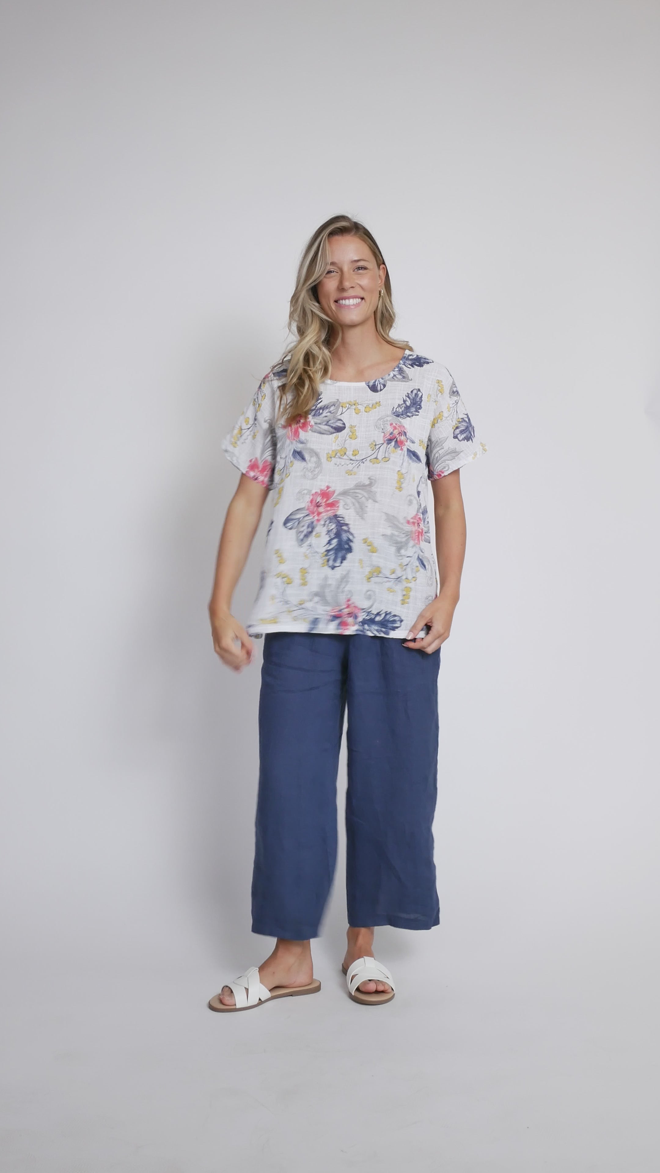 Feather floral print cotton gauze top
