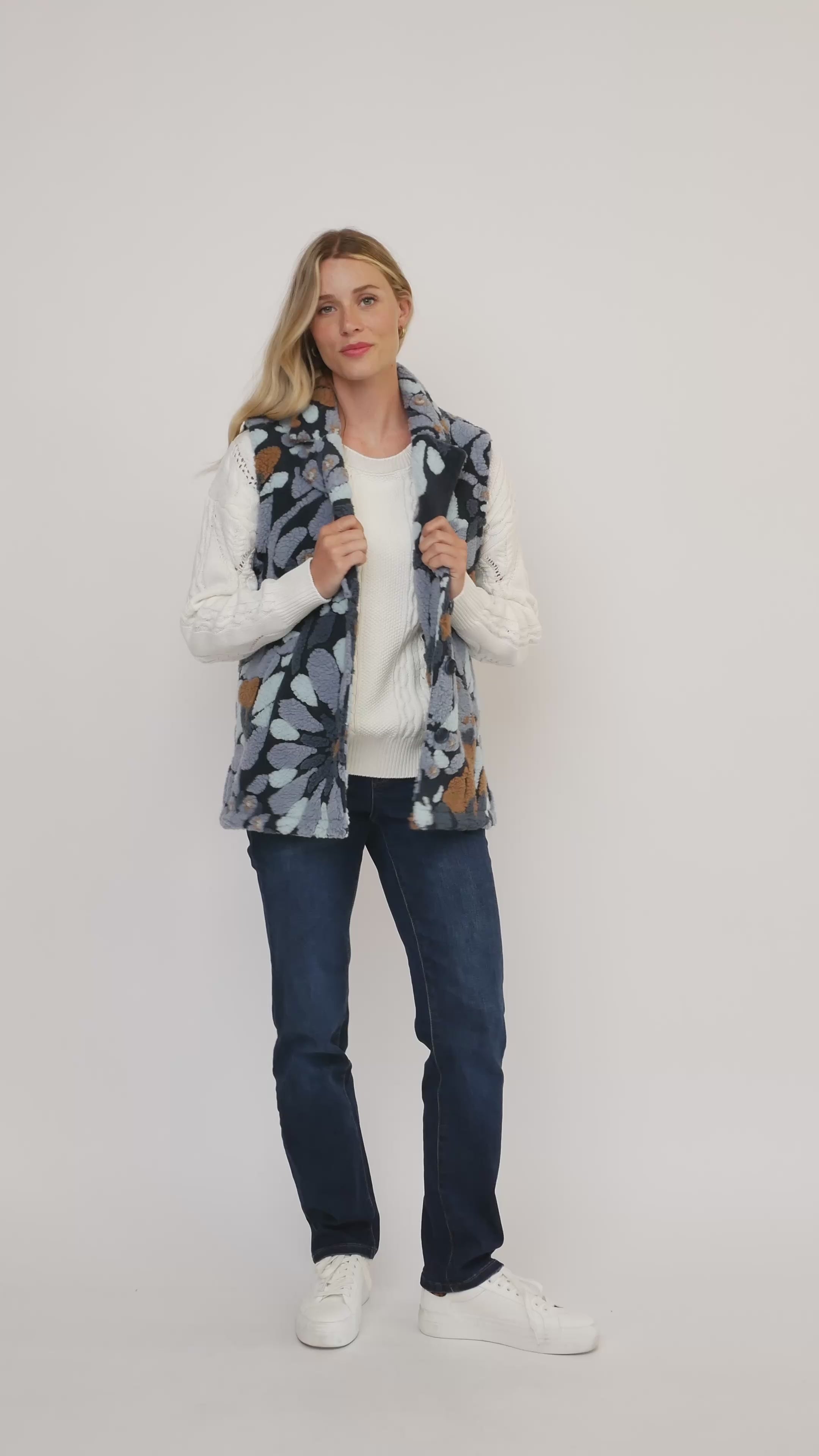 Stay cozy and stylish with this sleeveless flocked fleece vest by Charlie B. Featuring a playful notch collar and button-front detail, it adds a fun twist to your layering game. Crafted from a soft wool blend, this vest keeps you warm while the unique flocking detail gives it a charming texture. Perfect for adding a pop of personality to any outfit!
