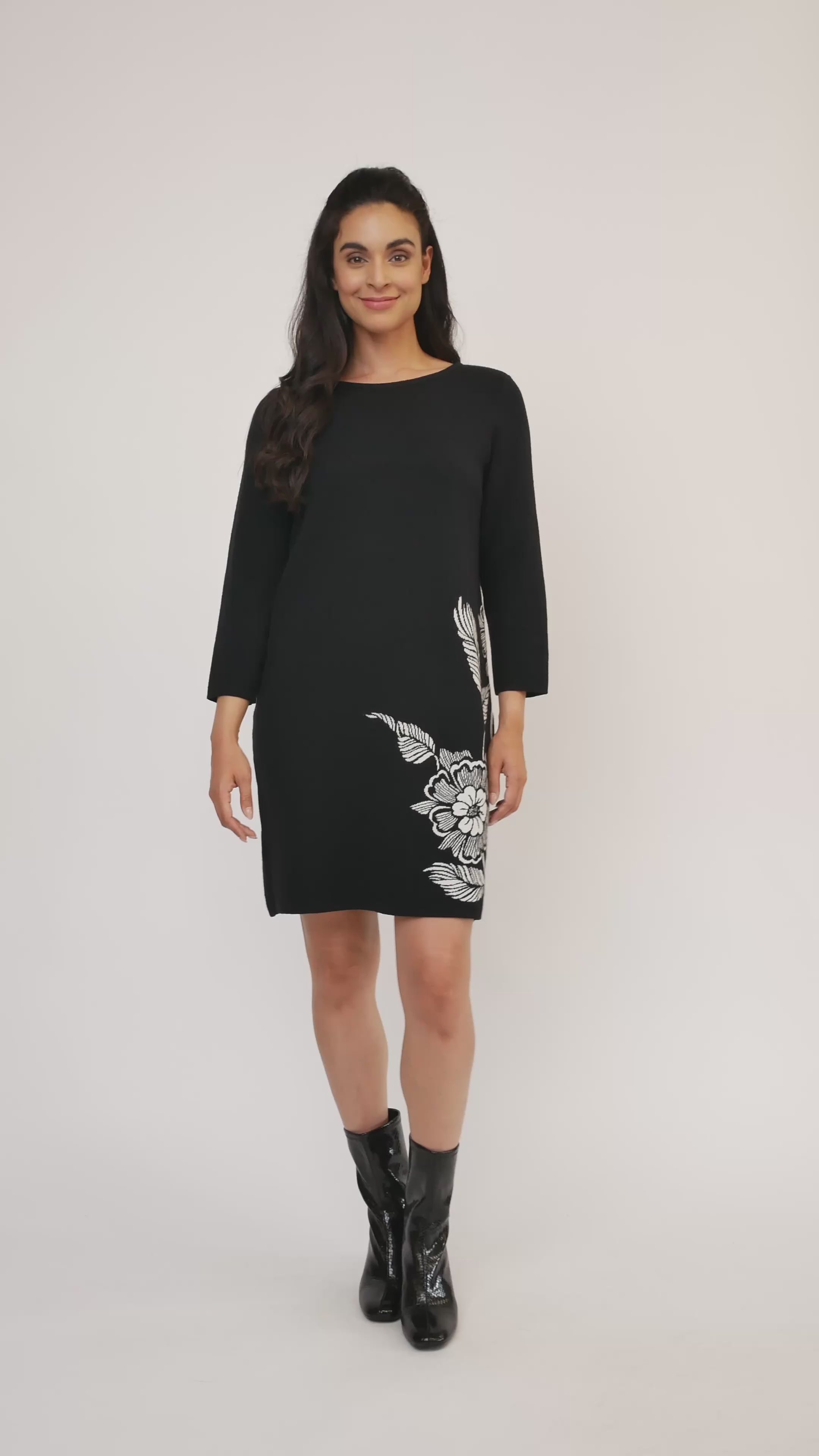 Step into fun and flair with this floral border dress by Tribal. Featuring comfy 3/4 sleeves and a cozy crew neckline, its soft double knit fabric keeps you feeling great all day. The floral border adds a charming touch that's perfect for brightening your look wherever you go!