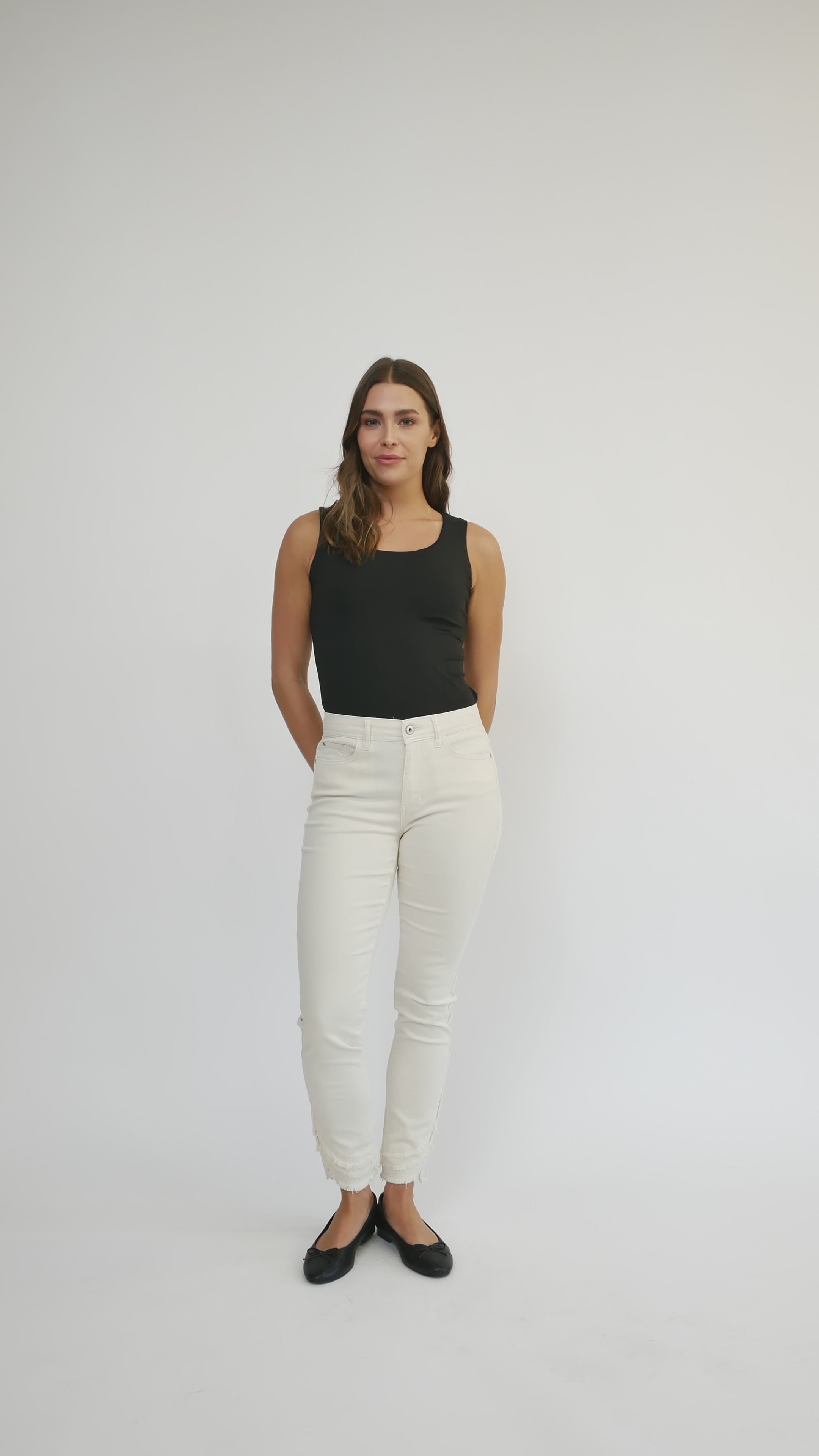 Step out in style with these skinny leg pants from Charlie B. Featuring a classic fly front, five-pocket design, and a frayed hem, they add just the right amount of edge to your look. Crafted from comfortable cotton fabric, these pants are perfect for turning heads while staying comfy all day long.