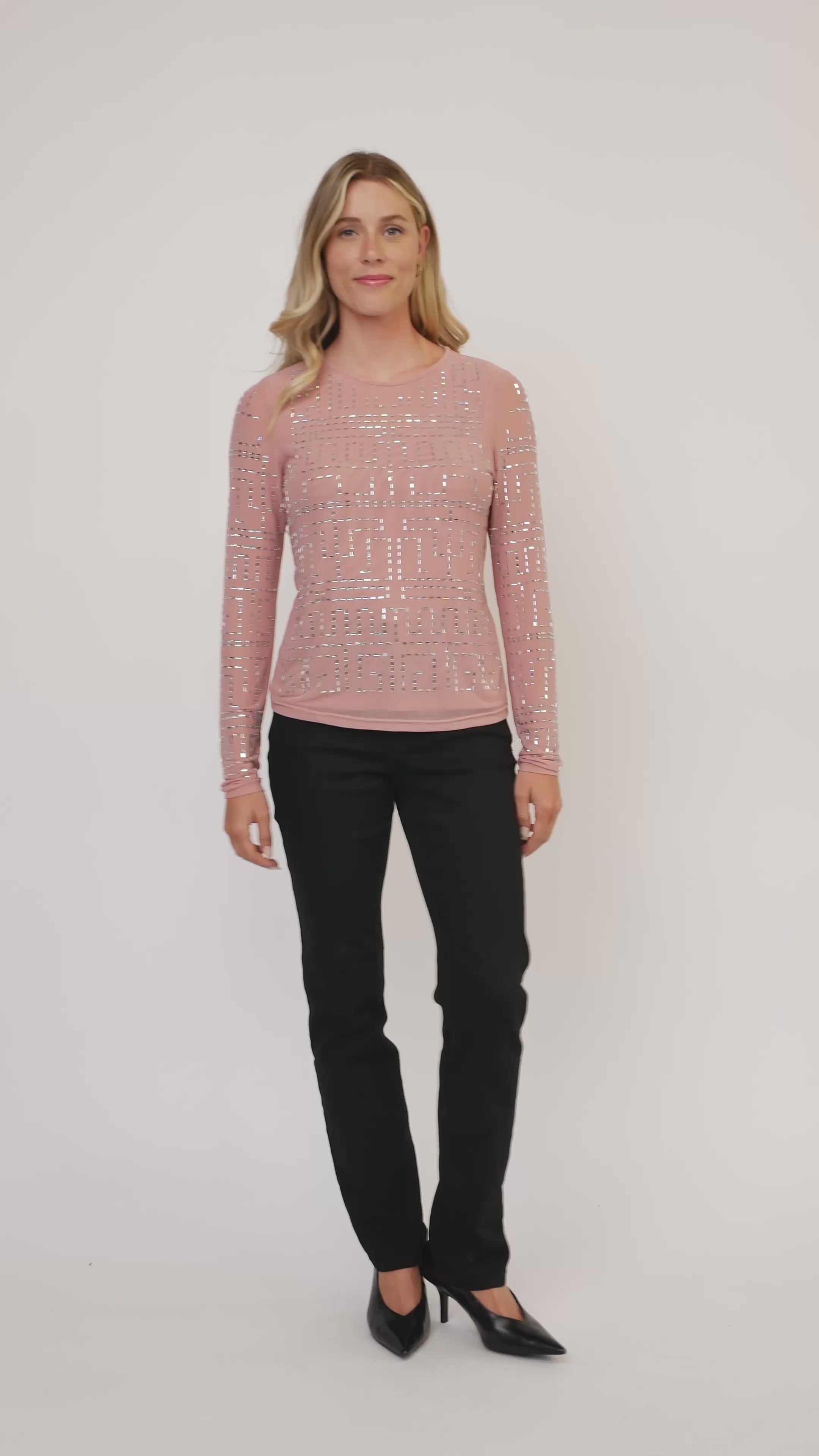 Turn heads effortlessly with this mesh top by Ness, sparkling with eye-catching sequin details. Designed with a comfy crew neckline and long sleeves, it’s perfect for layering or shining on its own. Available in both Petite and Regular fits, this top blends fun and flair for any occasion.
