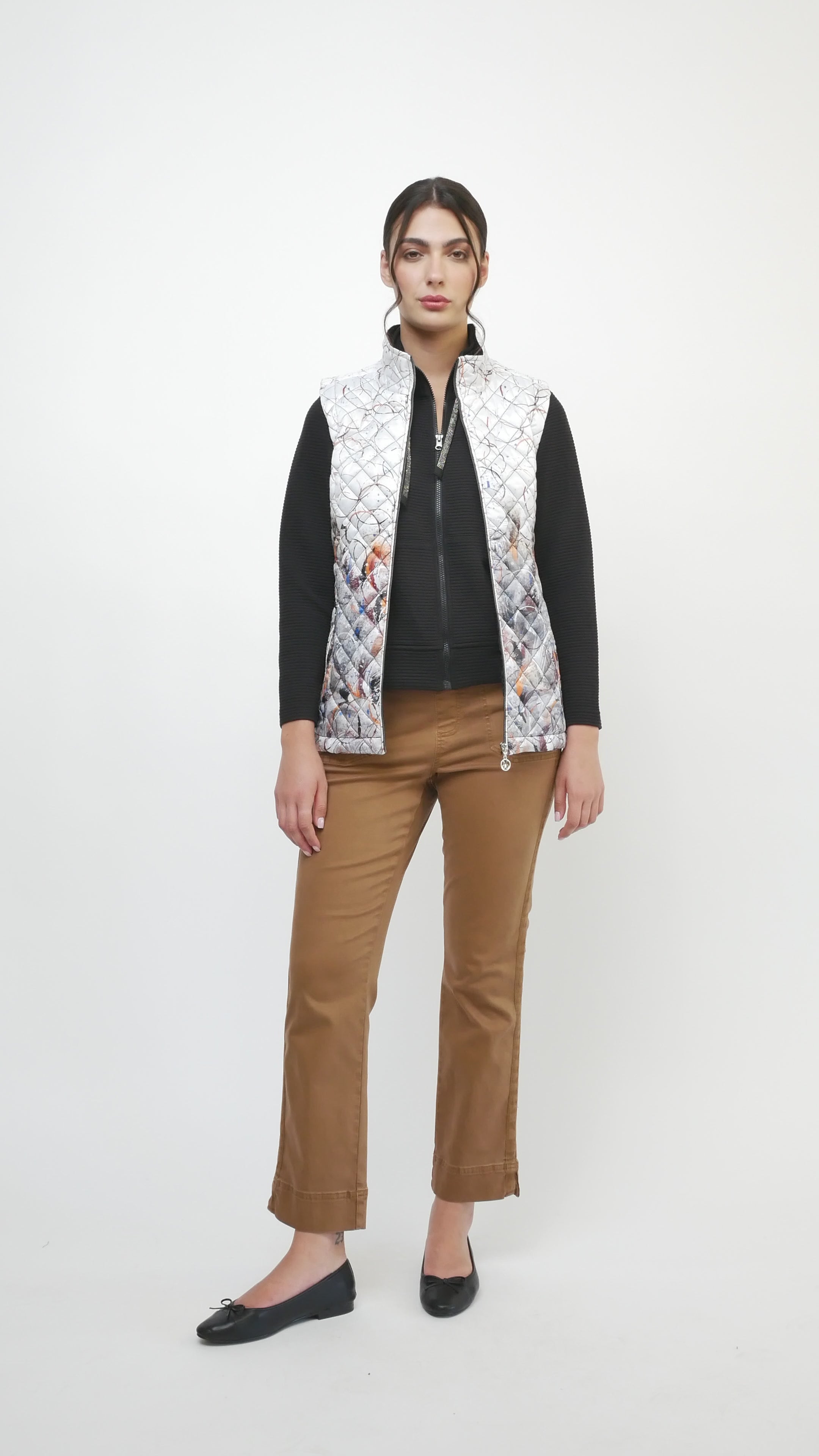 Stay cozy and chic with this printed vest by Dolcezza. Featuring a sleek mock neck and handy pocket detail, it’s perfect for layering. The zipper closure and side rib accents add sporty flair, while the quilted fabric keeps you warm without the bulk. Ideal for adding a fun twist to your casual outfits!