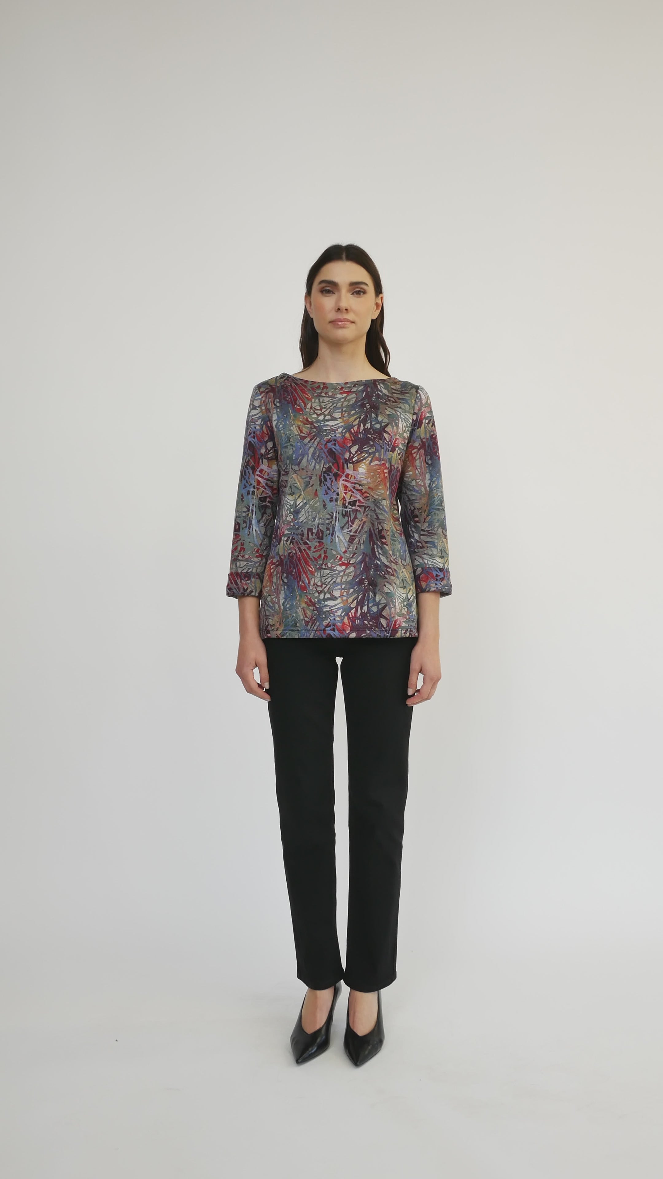 Elevate your everyday style with this charming printed double knit top, crafted exclusively for Cazza Petite & Zacks. Featuring a classic crew neckline and three-quarter sleeves finished with a polished cuff, this Canadian-made piece offers the perfect blend of comfort and sophistication. The premium double knit fabric provides structure and durability, making it an ideal layering piece or standalone statement. Whether you're dressing up or keeping it casual, this versatile top brings a touch of elegance to any wardrobe.